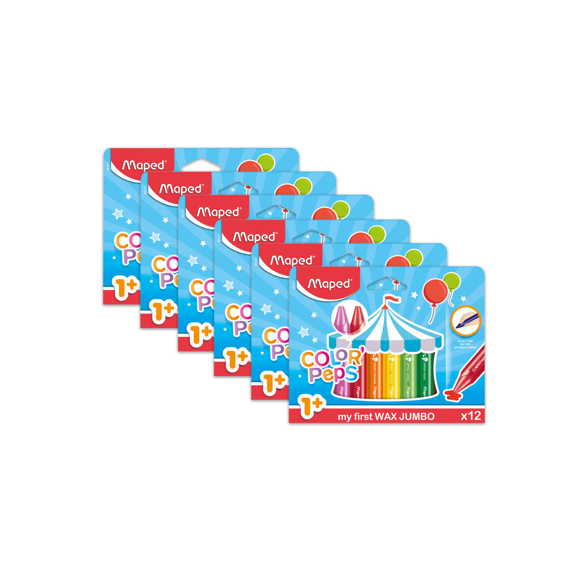 My First Jumbo Wax Crayons have an easy-grip triangular shape that is perfect for young hands! Oversized crayons (3-1/2 x 5/8 inches) resist breakage and the triangular shape promotes writing-readiness skills. Super-soft wax lays down color smoothly and easily on all paper types, with bright vibrant colors that leap off the page. Paper-wrapped crayons will not make a mess and easily sharpen in any oversized crayon sharpener. Each pack includes 12 crayons in the following colors: Aubergine, Marina Blue, Bubble Blue, Lovely Pink, Red Kiss, Fruity Orange, Blush, Sunny Yellow, Jungle Green, Green Golf, Woody Brown and Black. Sold as 6 packs for a total of 72 crayons.