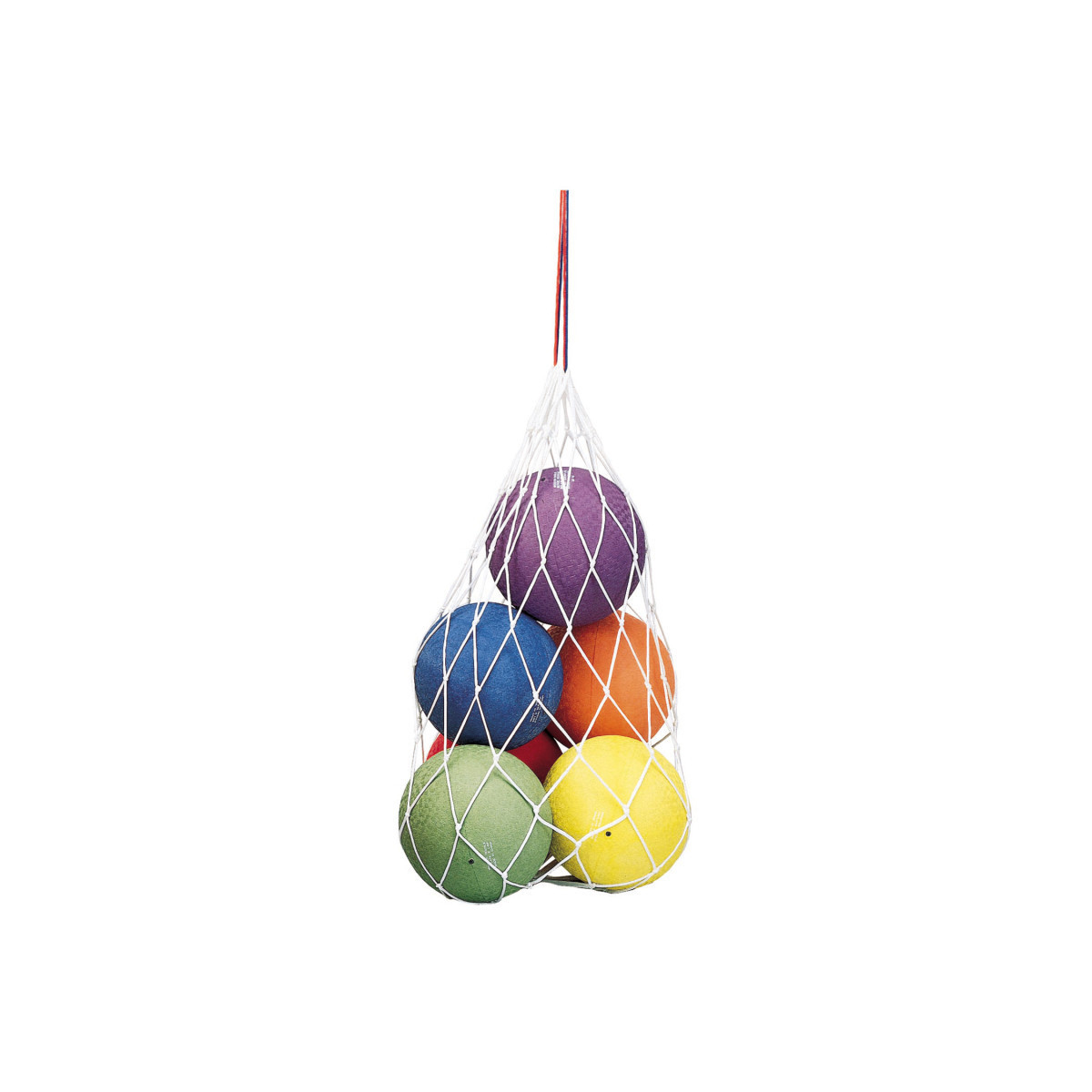 Heavy duty 4" mesh ball carry net with drawstring closure holds 8 basketballs or 12 volleyballs. Use to carry sports balls such as soccer balls, basketballs, dodgeballs, footballs, volleyballs, playground balls, and more. Or even use it for sand and water toys at home or on vacation. Drawstring closure keeps items secure. Each bag measures 24" x 36". Balls sold separately.