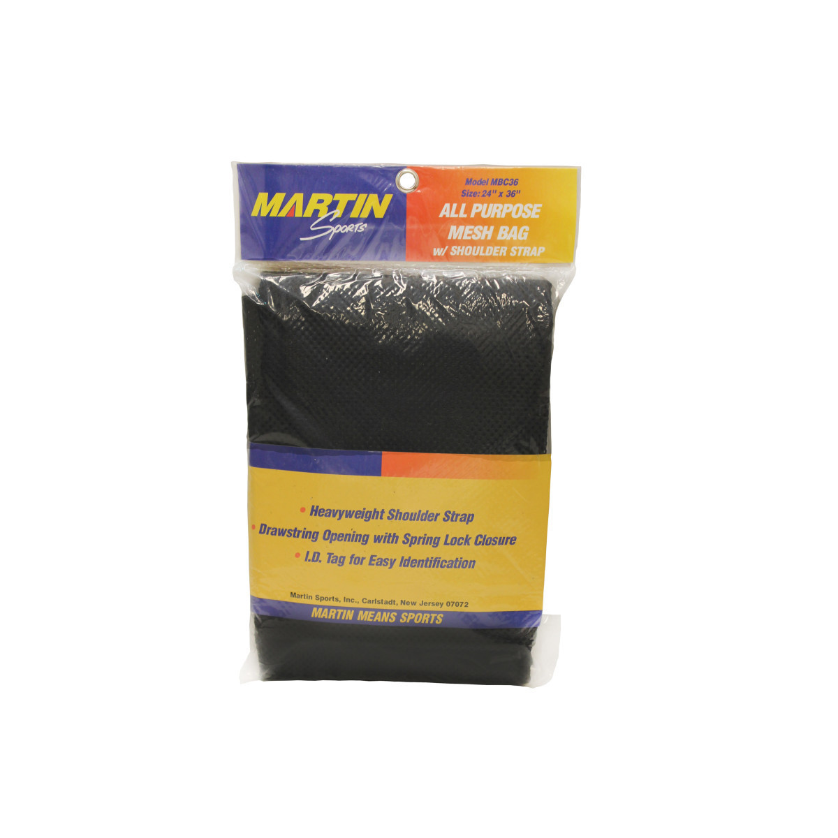 Small mesh opening-suitable for screen printing with a heavy drawstring, plastic lock closure, heavy carrying strap and I.D. tag for easy identification. Can be used as equipment, laundry, or ball bag.