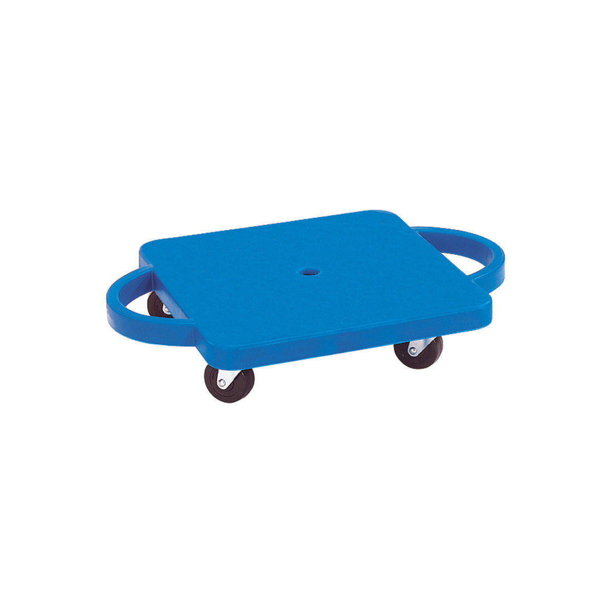 The Martin Sports Plastic Scooter with handles measures 12" x 12", and features non-marring rubber wheels. Blue.