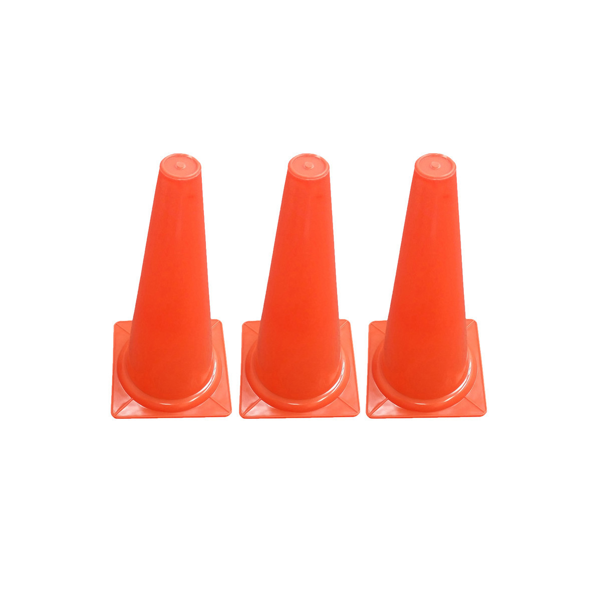 The Martin Sports Hi Visibility Safety Cone measures 15"H with base, and features a bright orange color. Sold as a pack of 3 cones.