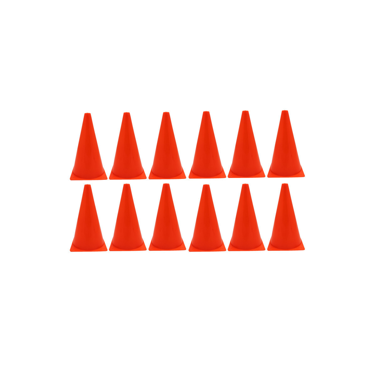 Create an obstacle course, mark boundaries, or practice agility with the Hi-Visibility Fluorescent Poly Cone. These Hi-Visibility Fluorescent Poly Cones are a bright fluorescent orange. Each cone measures 9 inches. Sold as a pack of 12 cones.