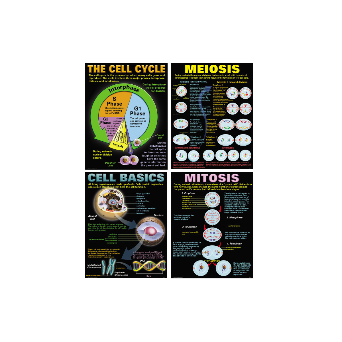 Help students learn about the “building blocks” of life with these posters that teach the main parts of a cell and the phases of the cell cycle. The posters also clearly describe and illustrate the stages of mitosis and meiosis. Includes 4 posters. Each poster measures 17" x 22".