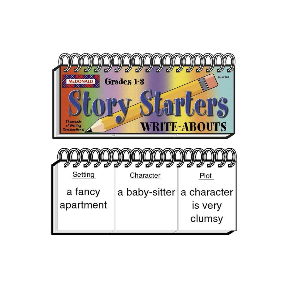 Students flip through the pages in the three sections of this booklet to select a setting, a character, and a plot description. Then they put their pencils and imaginations in motion as they respond to their custom-made story starters. For grades 1-3.