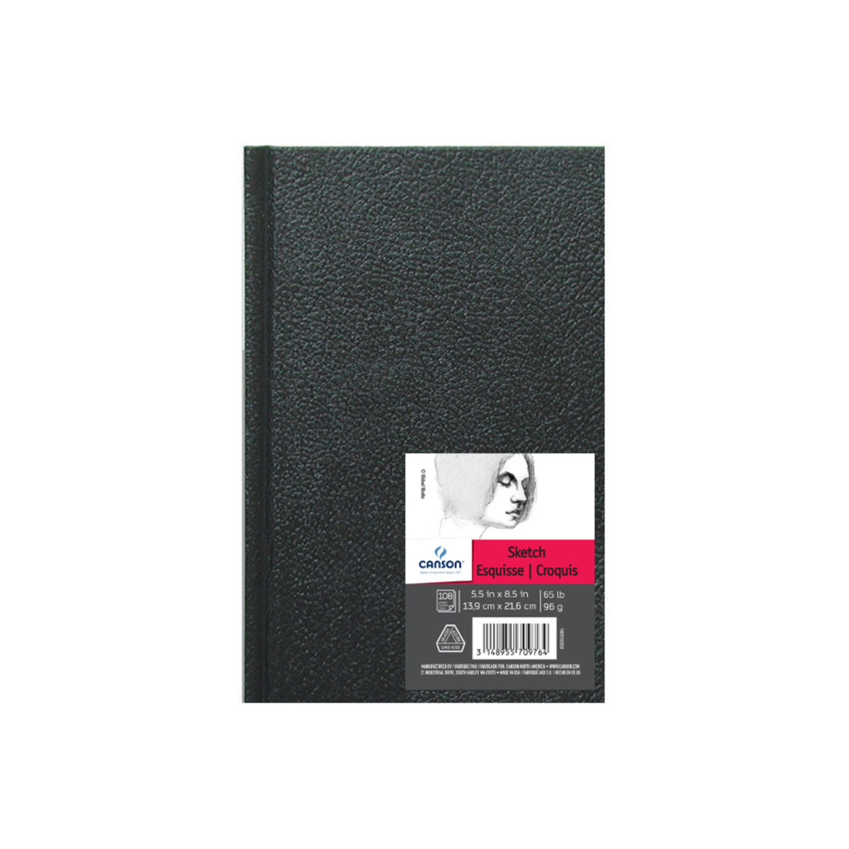 Canson Artist Series Sketch Art Book, Black Cover, Hardbound, 108 Sheet, 5.5x8.5 inch, 1 Count