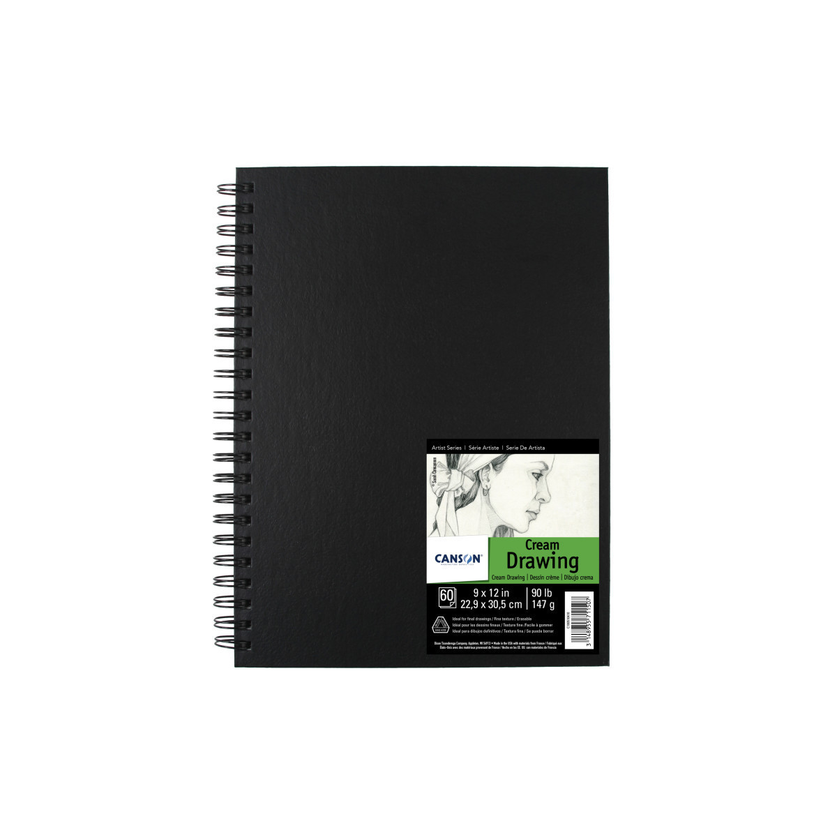 Canson Artist Series Drawing Art Book, Cream Tone, Black Cover, Wire Binding, 60 Sheet, 9x12 inch, 1 Count