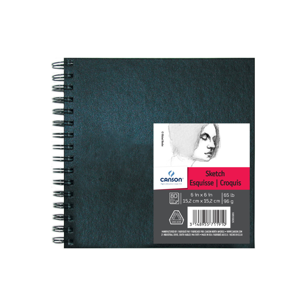 Canson Artist Series Sketch Art Book, Black Cover, Wire Binding, 80 Sheet, 6X6 inch, 1 Count