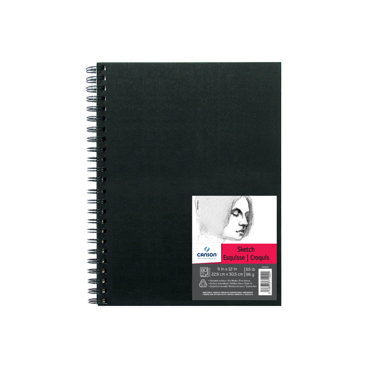 Canson Artist Series Sketch Art Book, Black Cover, Wire Binding, 80 Sheet, 9x12 inch, 1 Count