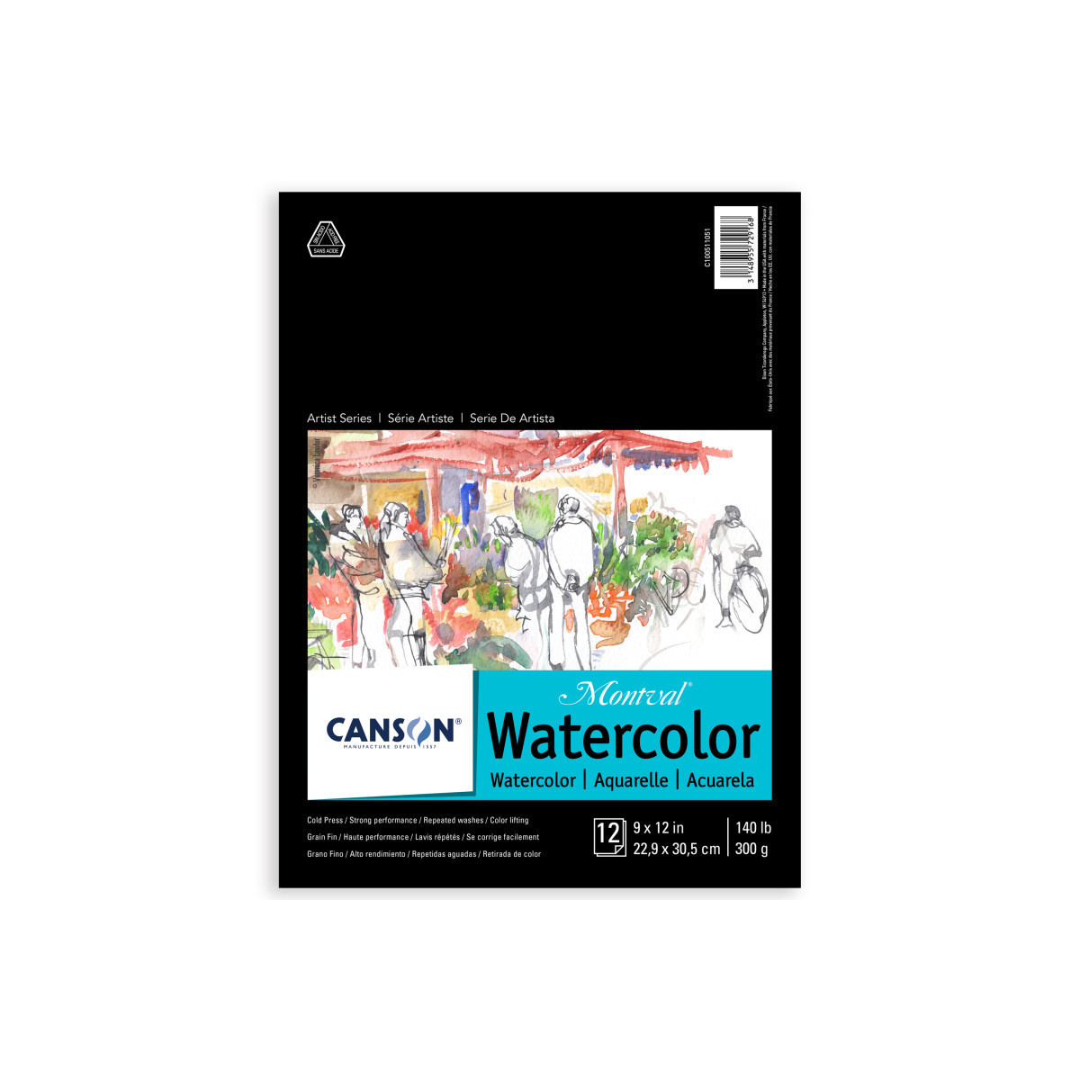 Canson Artist Series Montval Watercolor Pad, Foldover Binding, Foldover Binding, 12 Sheet, 9x12 inch, 1 Count