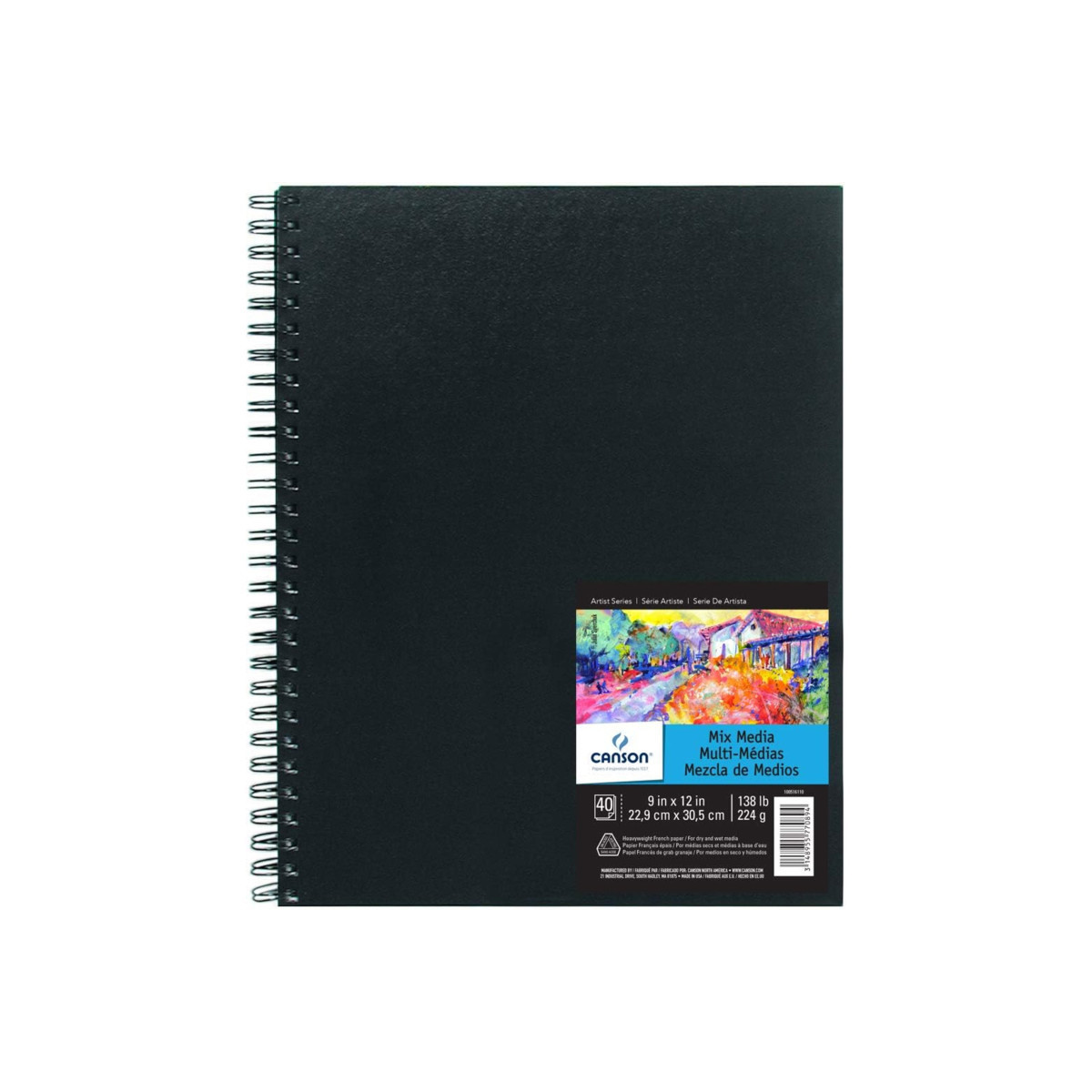 Canson Artist Series Mixed Media Art Book, Black Cover, Side Wire Binding, 10 Sheet, 9x12 inch, 1 Count
