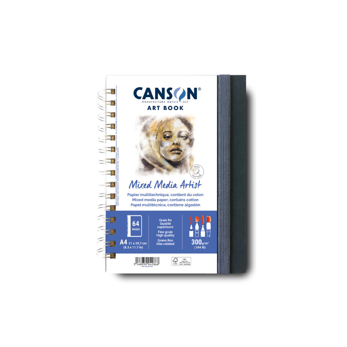 Canson Artist Series Mixed Media Art Book, Fabric Cover, Side Wire Binding, 56 Sheet, 8.3x11.7 inch