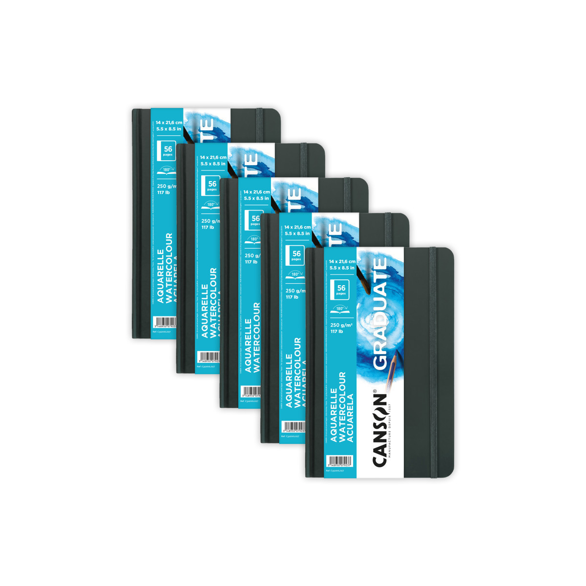 Canson Graduate Watercolor Art Book, Hard Cover Binding, 28 Sheet, 5.5x8.5 inch, Pack of 5