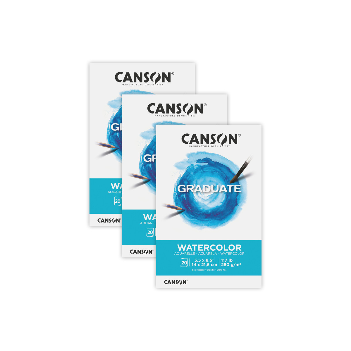 Canson Graduate Watercolor Pad, Foldover Binding, 20 Sheet, 5.5x8.5 inch, Pack of 3
