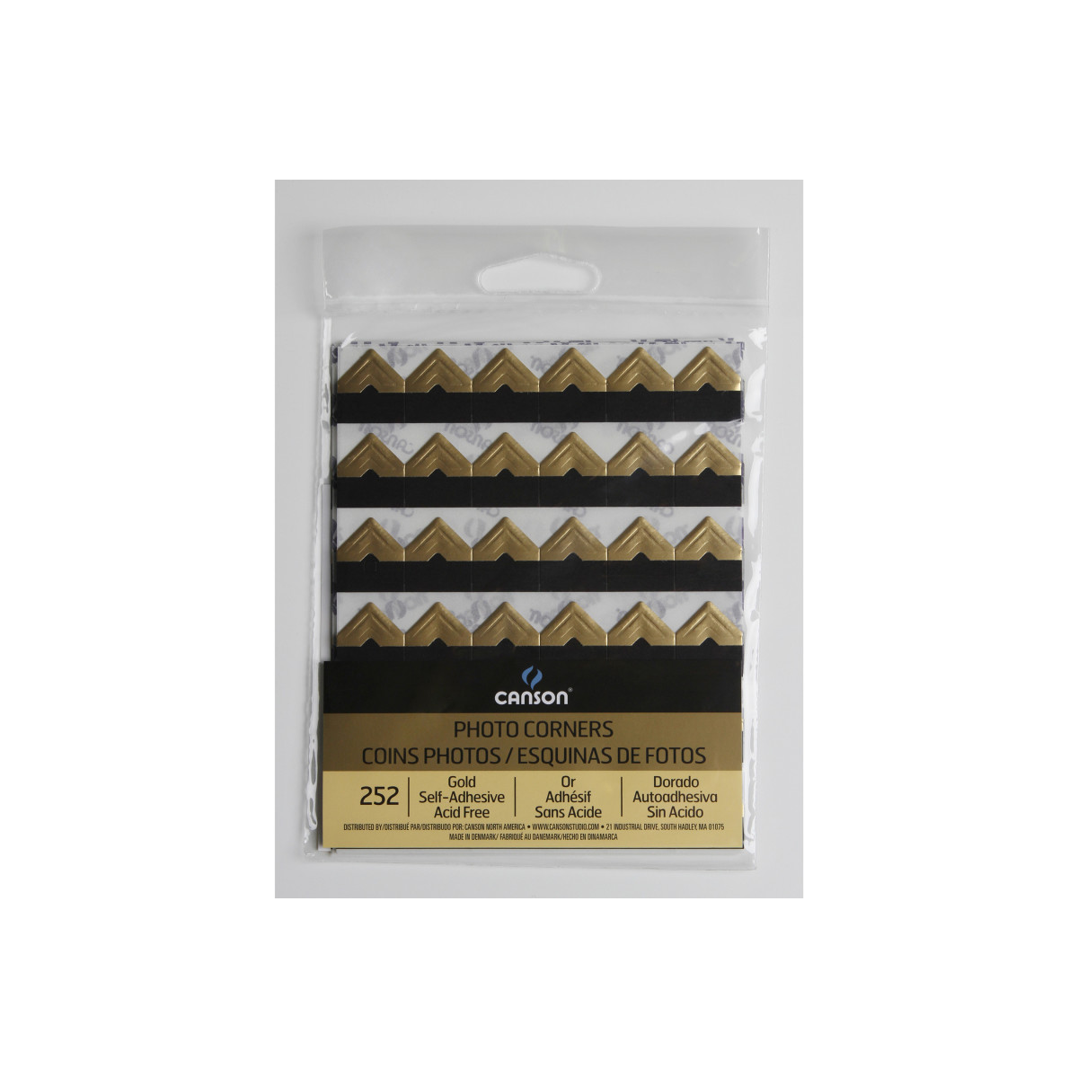 A fast, easy solution to mount your precious photos or artwork. Canson self adhesive corners assist in finalizing the display of your favorite pieces and are made with acid-free, non-yellowing adhesive. Simply place the corners on the desired piece and press against the backing board, scrapbook page or other display surface for a professional-looking and secure installation.