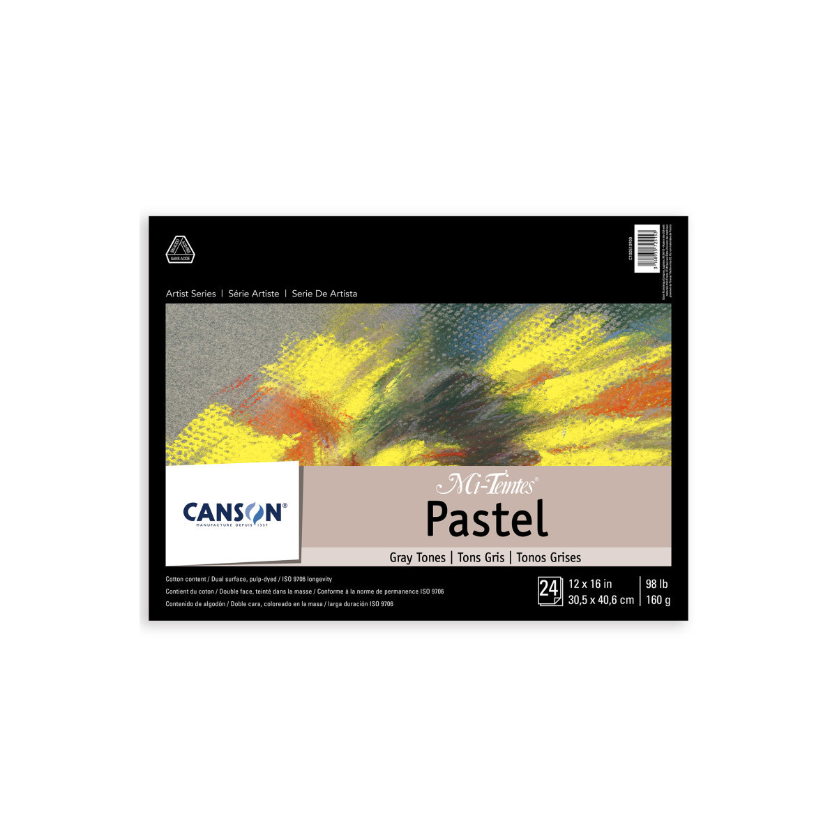 Canson Artist Series Mi-Teintes Pastel Pad, Gray Tones, Foldover Binding, 24 Sheet, 12x16 inch, 1 Count