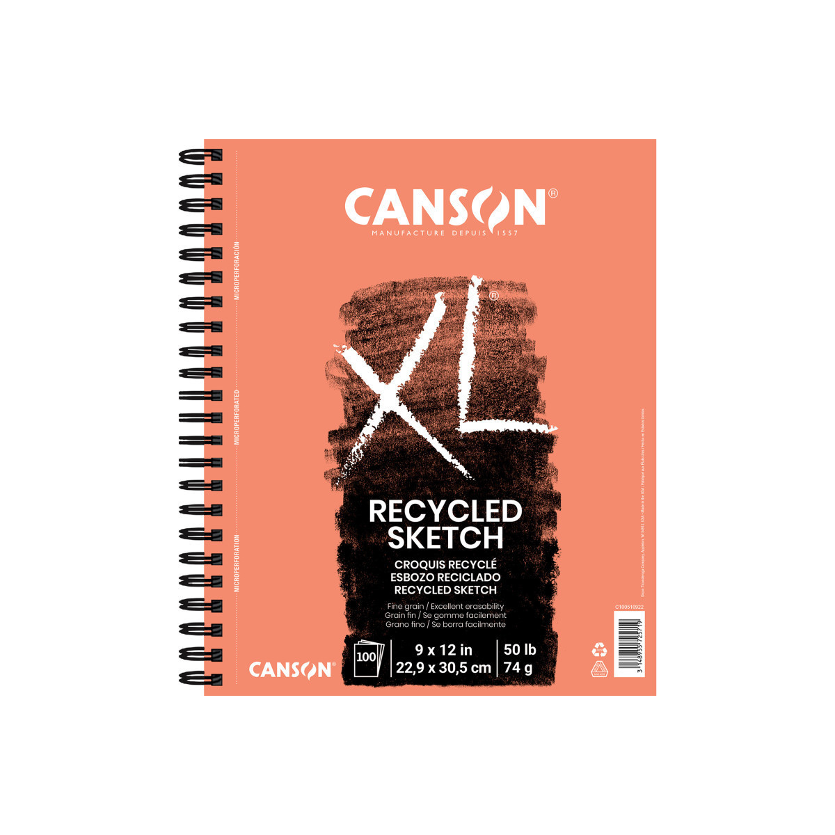 Canson XL Series Sketch Pad, Recycled, Side Wire Binding, 100 Sheet, 9x12 inch, 1 Count