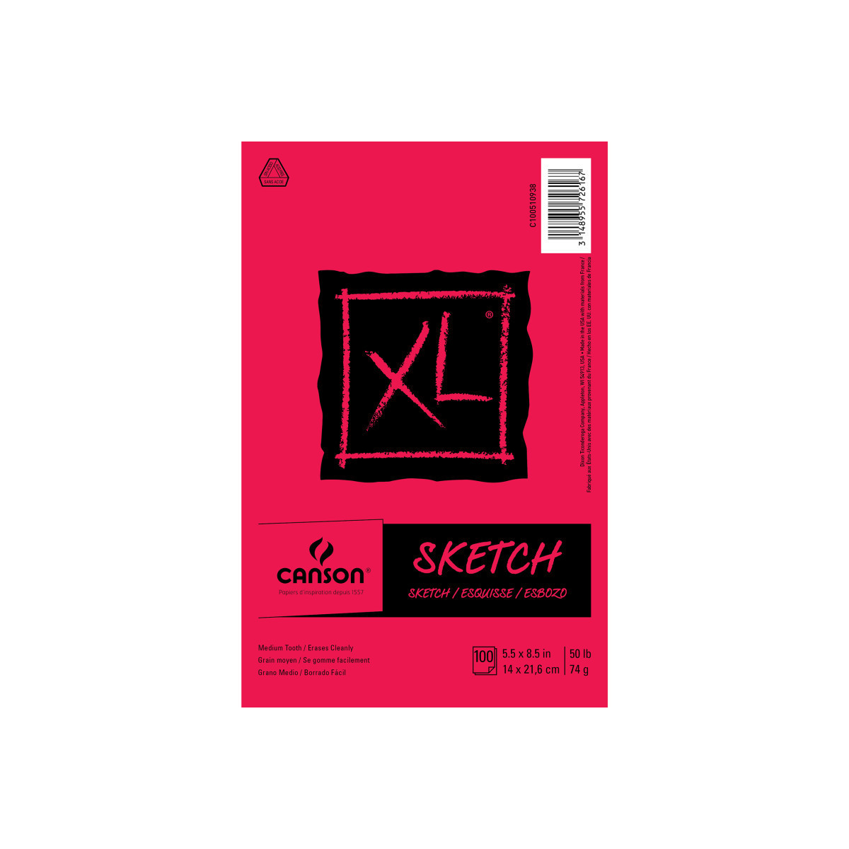 Canson XL Series Sketch Pad, Foldover Binding, 100 Sheet, 5.5x8.5 inch, 1 Count