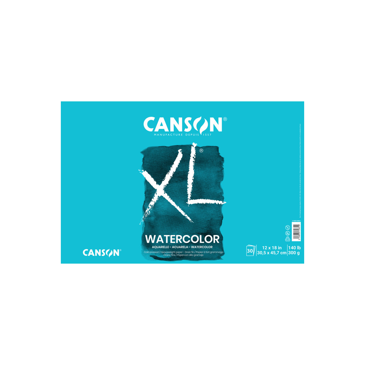 Canson XL Series Watercolor Pad, Heavyweight White Paper, Foldover Binding, 30 Sheets, 12x18 inch, 1 Count