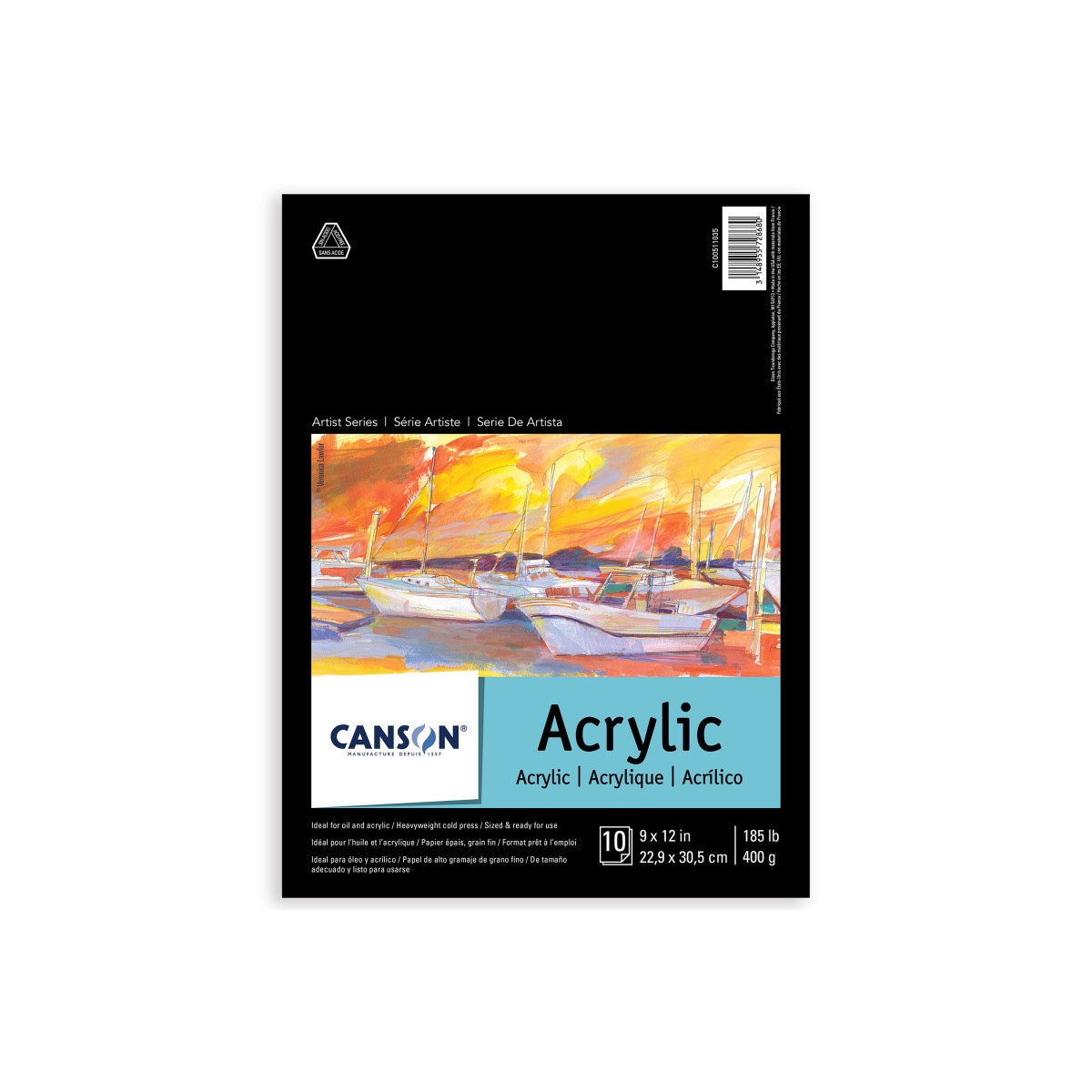 Canson Artist Series Acrylic Pad, Foldover Binding, 10 Sheet, 9x12 inch, 1 Count