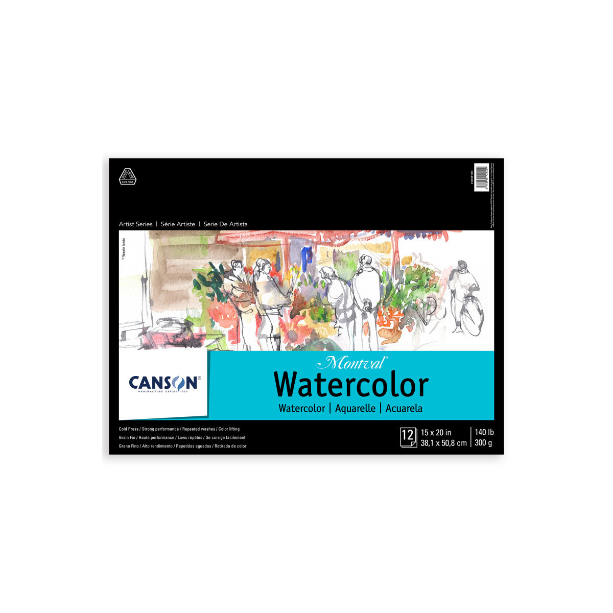 Canson Artist Series Montval Watercolor Pad, Foldover Binding, Foldover Binding, 12 Sheet, 15x20 inch, 1 Count