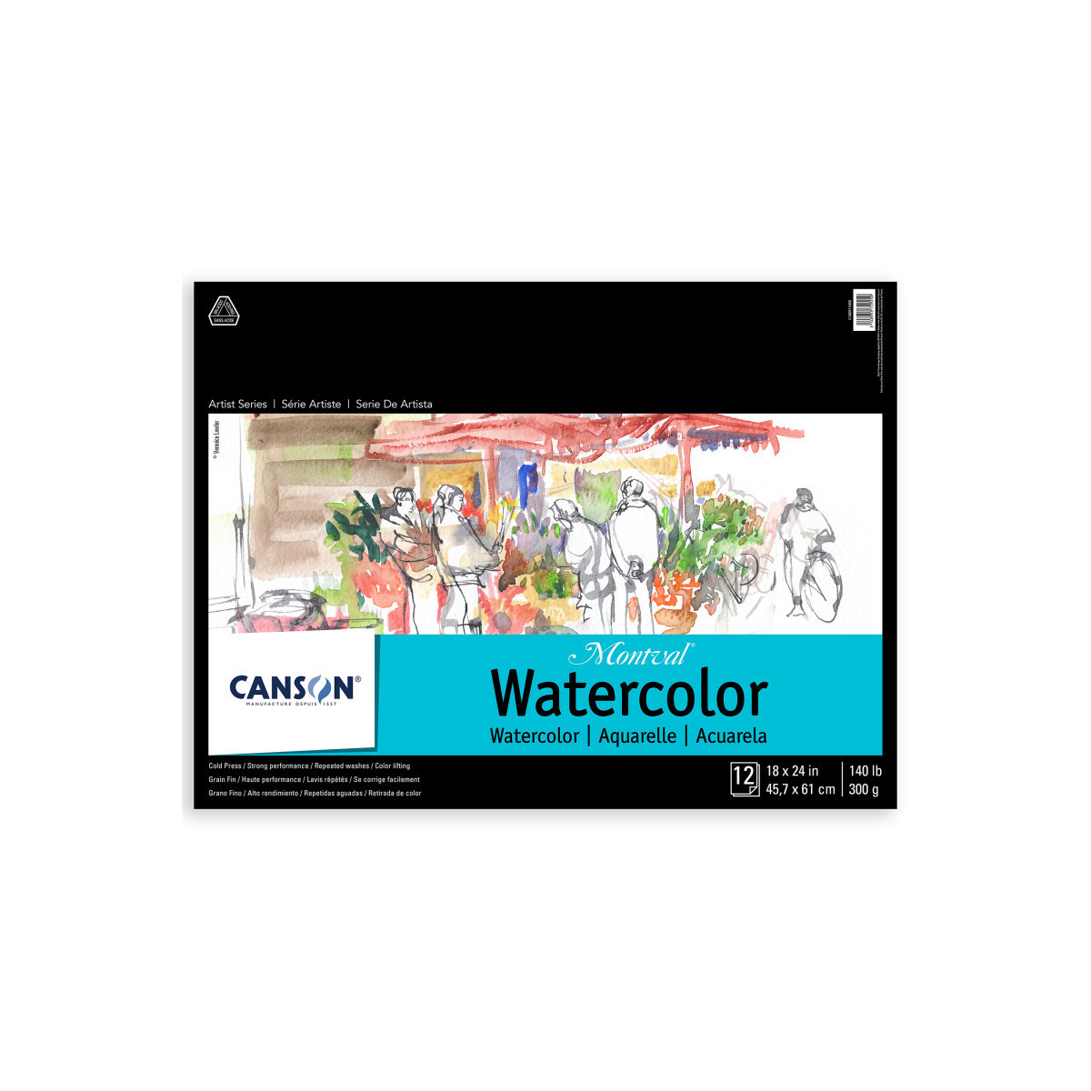 Canson Artist Series Montval Watercolor Pad, Foldover Binding, Foldover Binding, 12 Sheet, 18x24 inch, 1 Count