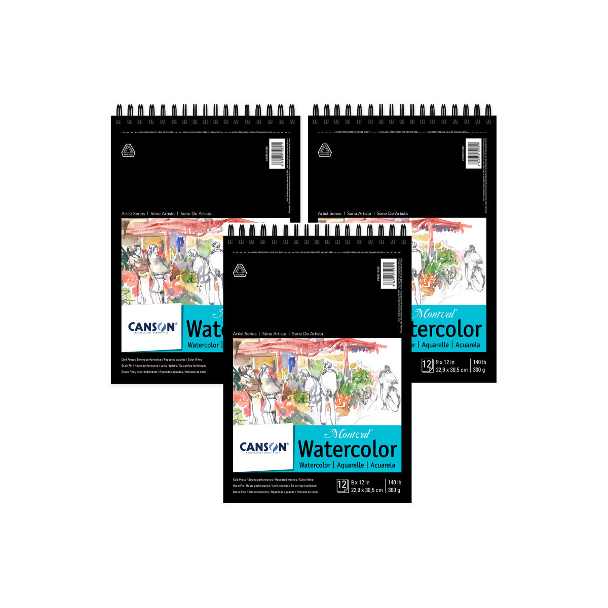 Canson Artist Series Montval Watercolor Pad, Top Wire Binding, 12 Sheet, 9x12 inch, Pack of 3
