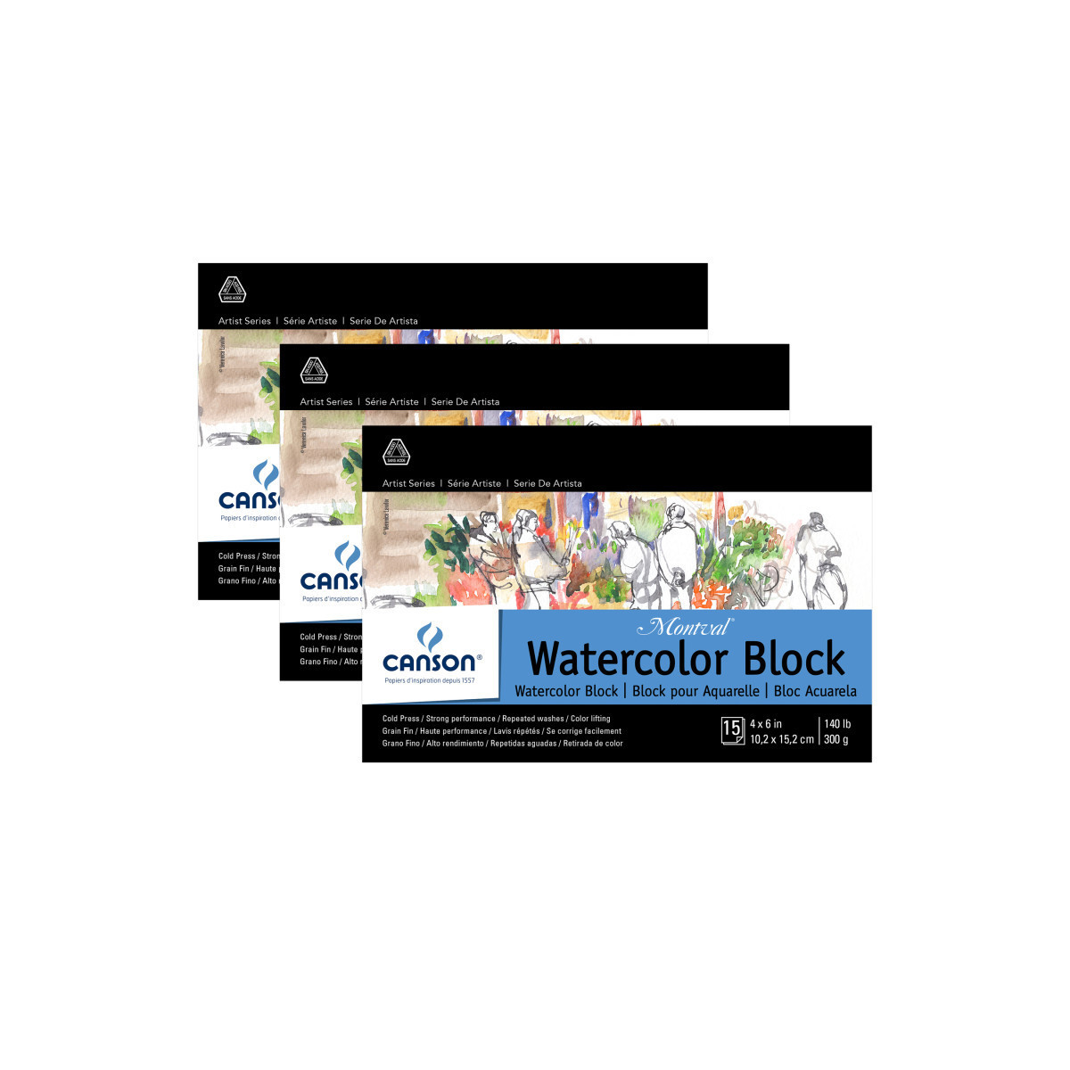 Canson Artist Series Montval Watercolor Block, Foldover Binding, 15 Sheet, 4x6 inch, Pack of 3