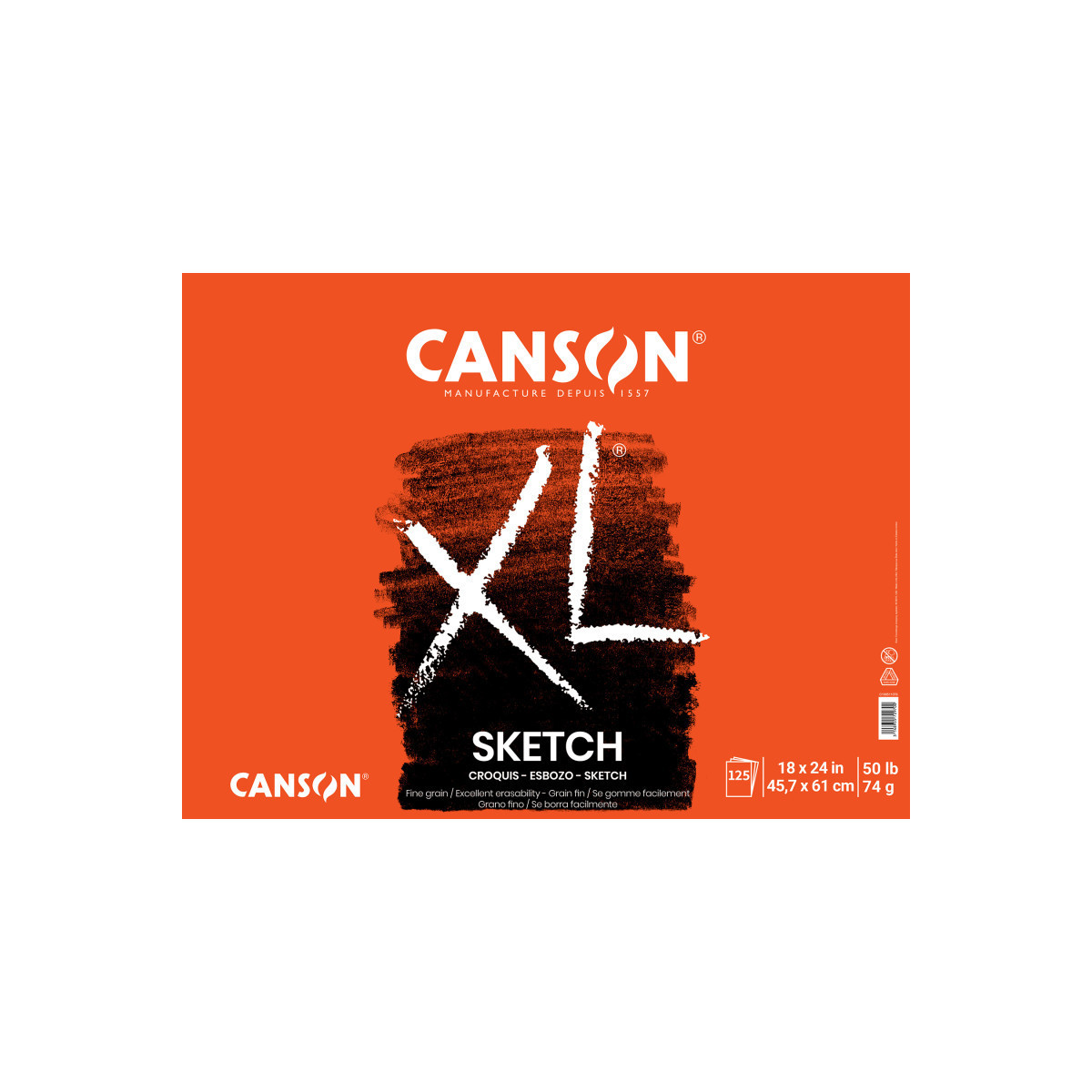 Canson XL Series Sketch Pad, Foldover Binding, 25 Sheet, 18x24 inch, 1 Count