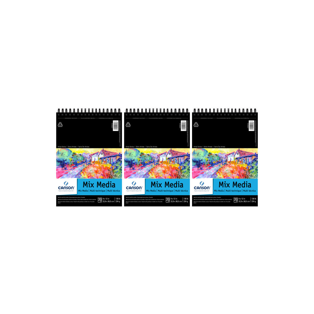 Canson Artist Series Mixed Media Pad, Top Wire Binding, 20 Sheet, 9x12 inch, Pack of 3