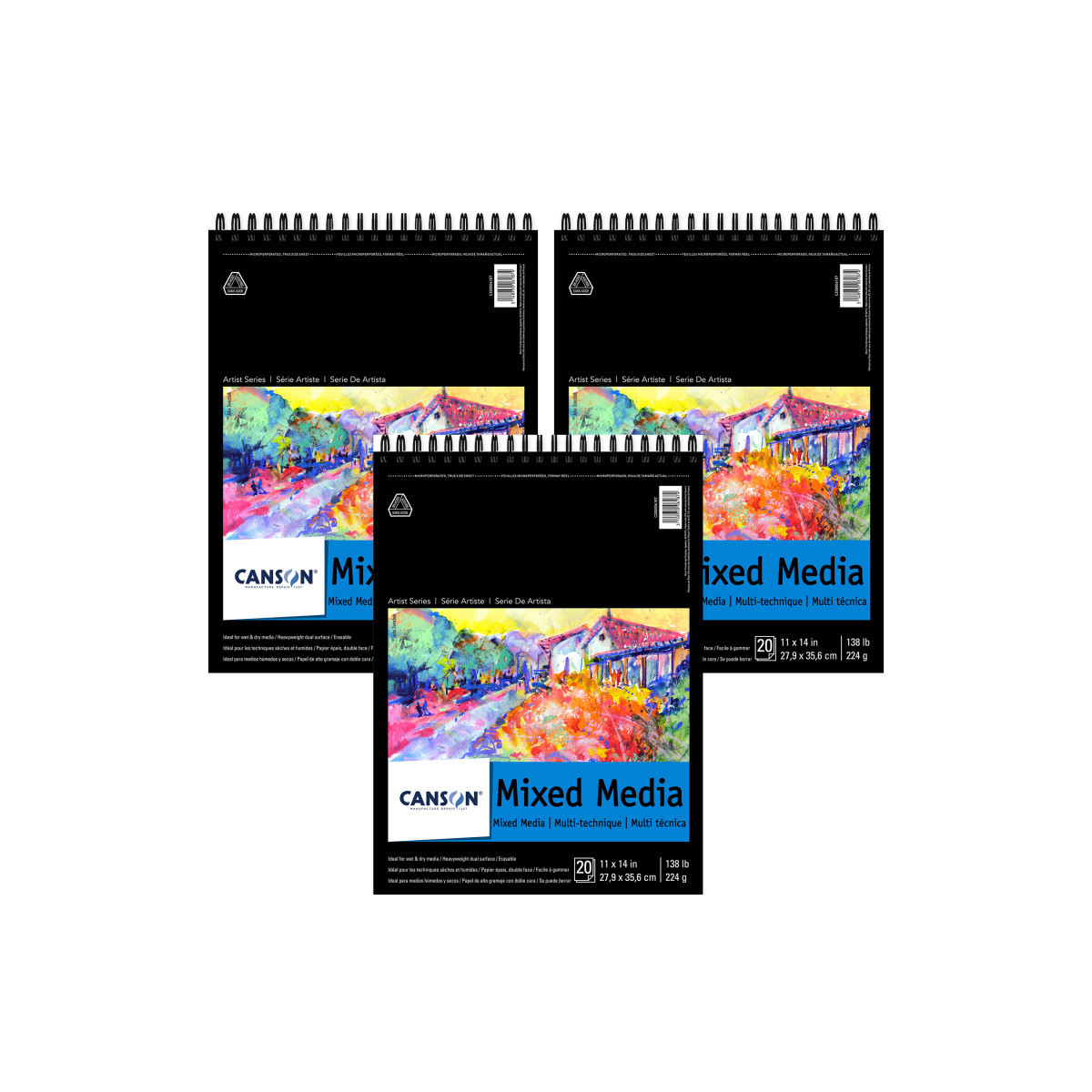 Canson Artist Series Mixed Media Pad, Top Wire Binding, 20 Sheet, 11x14 inch, Pack of 3