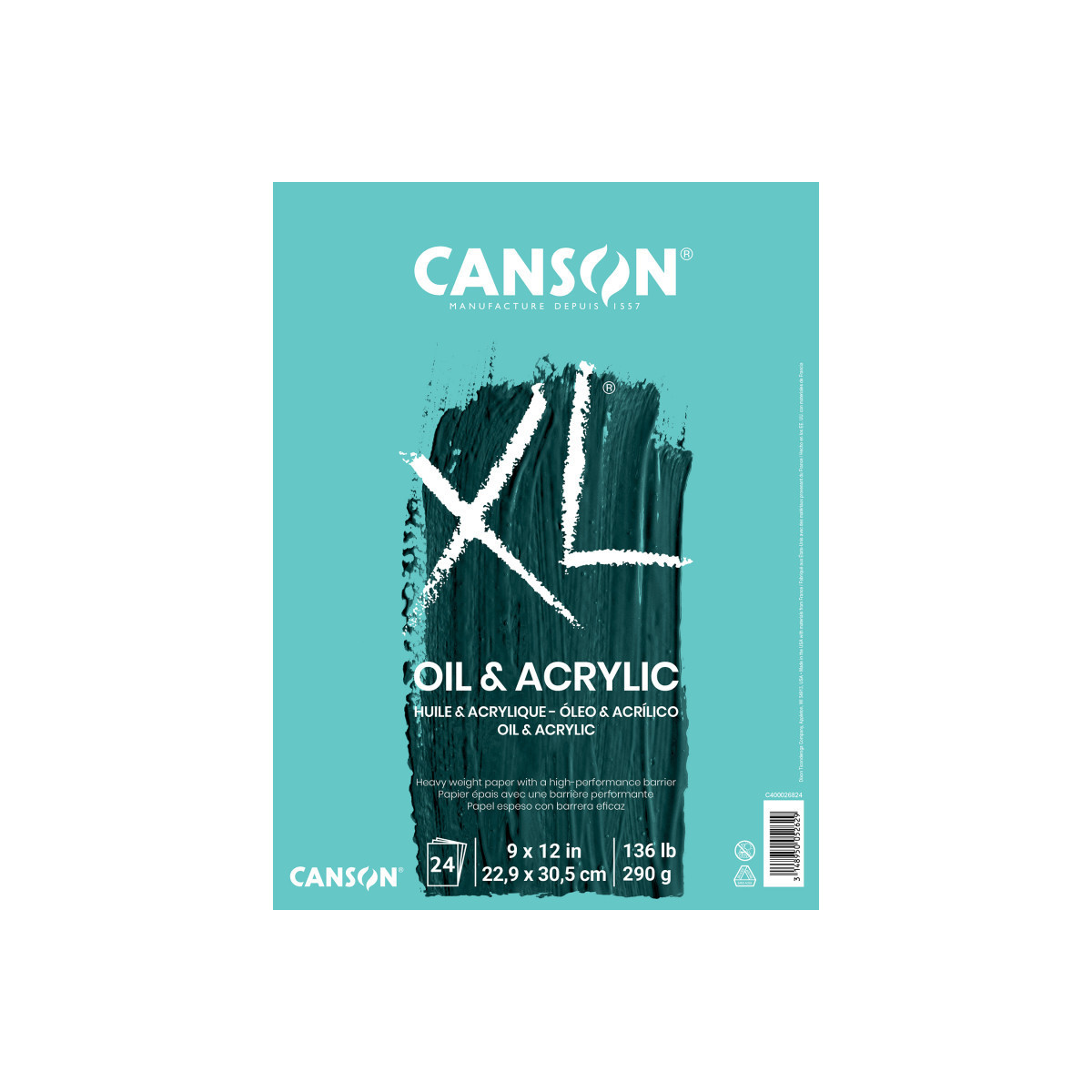 Canson XL Series Oil & Acrylic Pad, Foldover Binding, 24 Sheet, 9x12 inch, 1 Count