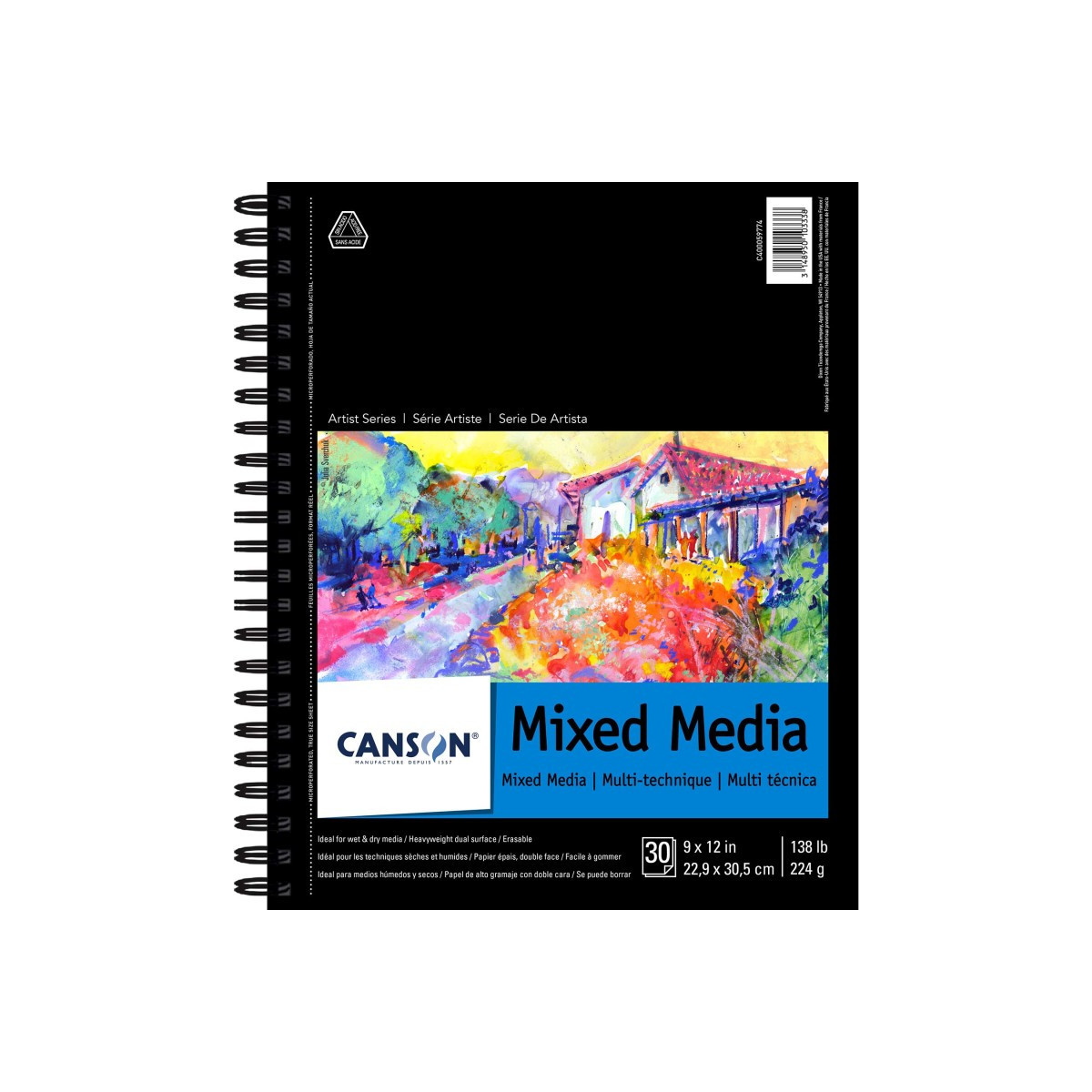 Canson Artist Series Mixed Media Pad, Side Wire Binding, 30 Sheet, 9x12 inch, 1 Count