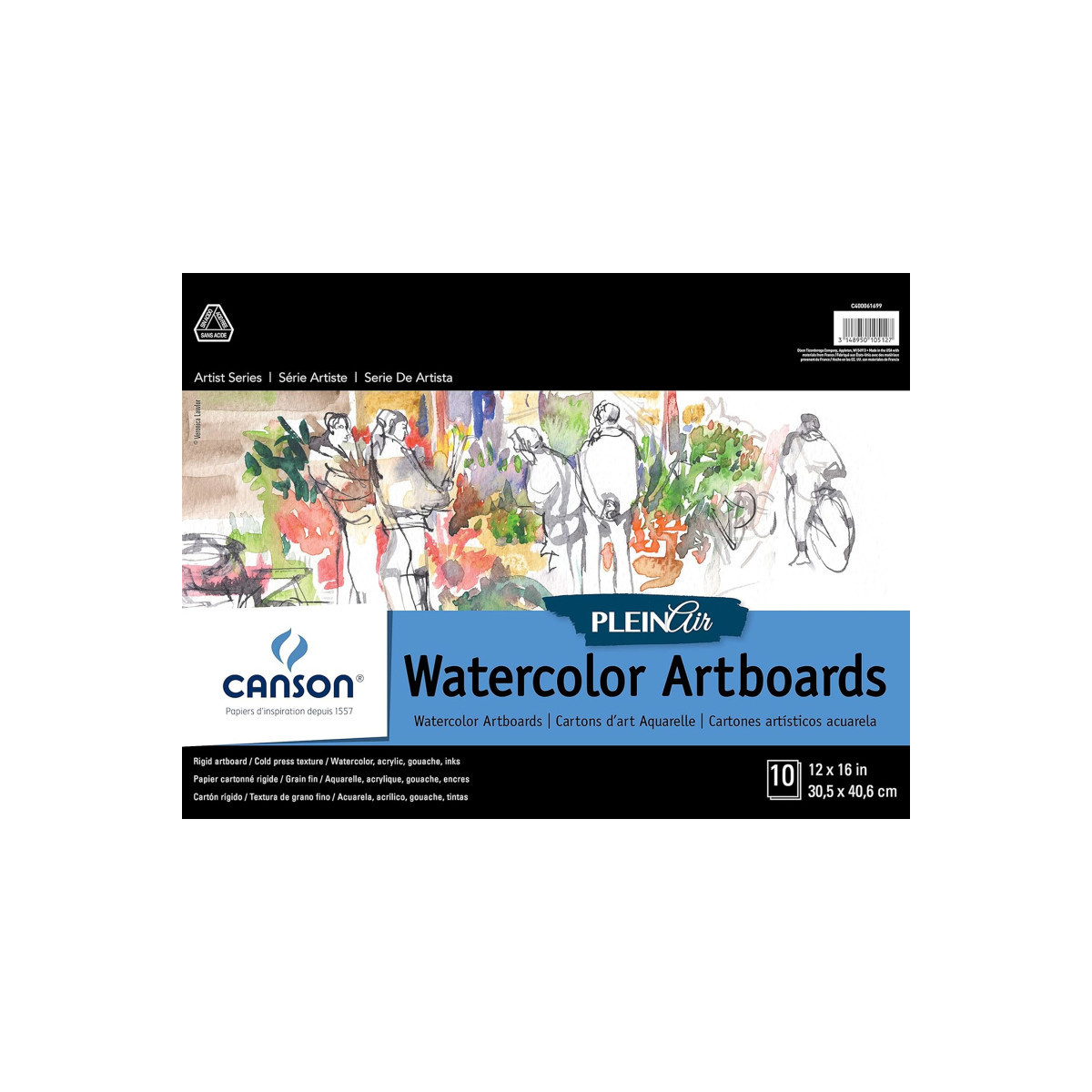 Canson Artist Series Montval Plein Air Watercolor Board, Foldover Binding, 10 Sheet, 12x16 inch, 1 Count