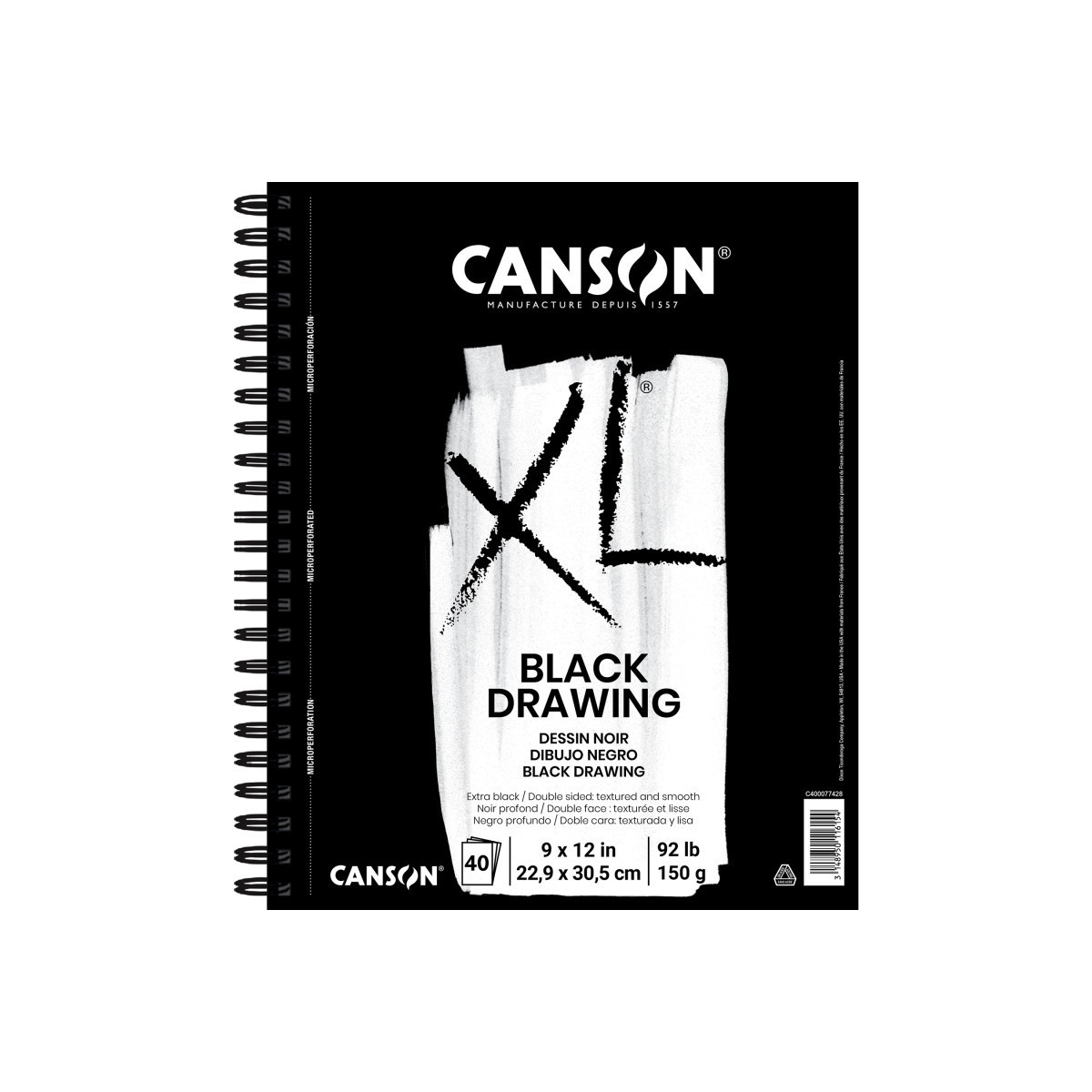 Create striking artwork with these black sheets that make your colors pop against a fade-resistant backdrop. Each two-sided, midweight sheet is built to handle layers of colored pencil, pastel, pen, & marker, with one textured side & one smooth side for versatile techniques. Featuring a durable cover, sturdy wire binding, & chipboard backing, this sketchbook is perfect for practice or final pieces, ready to go wherever your creativity takes you. With a rich heritage spanning over four centuries, the Canson brand has firmly established itself as a trusted & renowned name in the art world. Since its inception in 1557, Canson has been synonymous with quality & innovation, serving as a go-to choice for artists of all levels. The Canson XL range was specifically developed to meet the needs of art students—high sheet counts, various textures & weights, & sturdy binding at an affordable price. Students can explore their personal tastes & techniques across drawing, paint, & mixed media art forms. Once artists are confident enough in their skillset, we recommend transitioning over to the Canson Artist Series family of paper for a museum-quality look & feel.