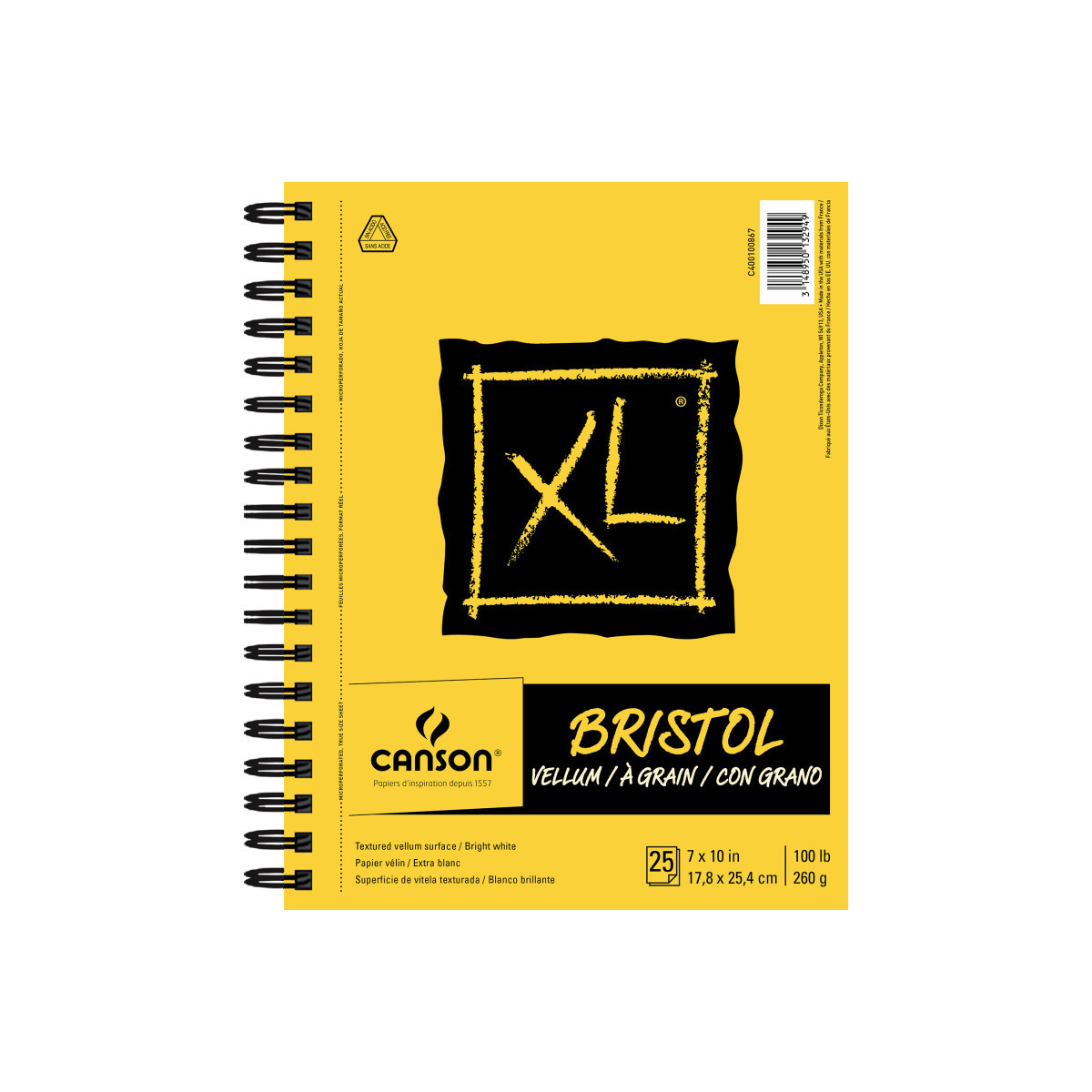Unleash your creativity with Bristol weight paper that's built to endure heavy inks, multiple media layers, & erasures without ever warping or tearing. Its vellum finish grips vibrant pigments from pastels, colored pencils, & graphite, making it perfect for both practice & standout final pieces. With its archival-quality, acid-free surface & a rugged, portable design, this sketchbook is ready to travel wherever your inspiration takes you. With a rich heritage spanning over four centuries, the Canson brand has firmly established itself as a trusted & renowned name in the art world. Since its inception in 1557, Canson has been synonymous with quality & innovation, serving as a go-to choice for artists of all levels. The Canson XL range was specifically developed to meet the needs of art students—high sheet counts, various textures & weights, & sturdy binding at an affordable price. Students can explore their personal tastes & techniques across drawing, paint, & mixed media art forms. Once artists are confident enough in their skillset, we recommend transitioning over to the Canson Artist Series family of paper for a museum-quality look & feel.