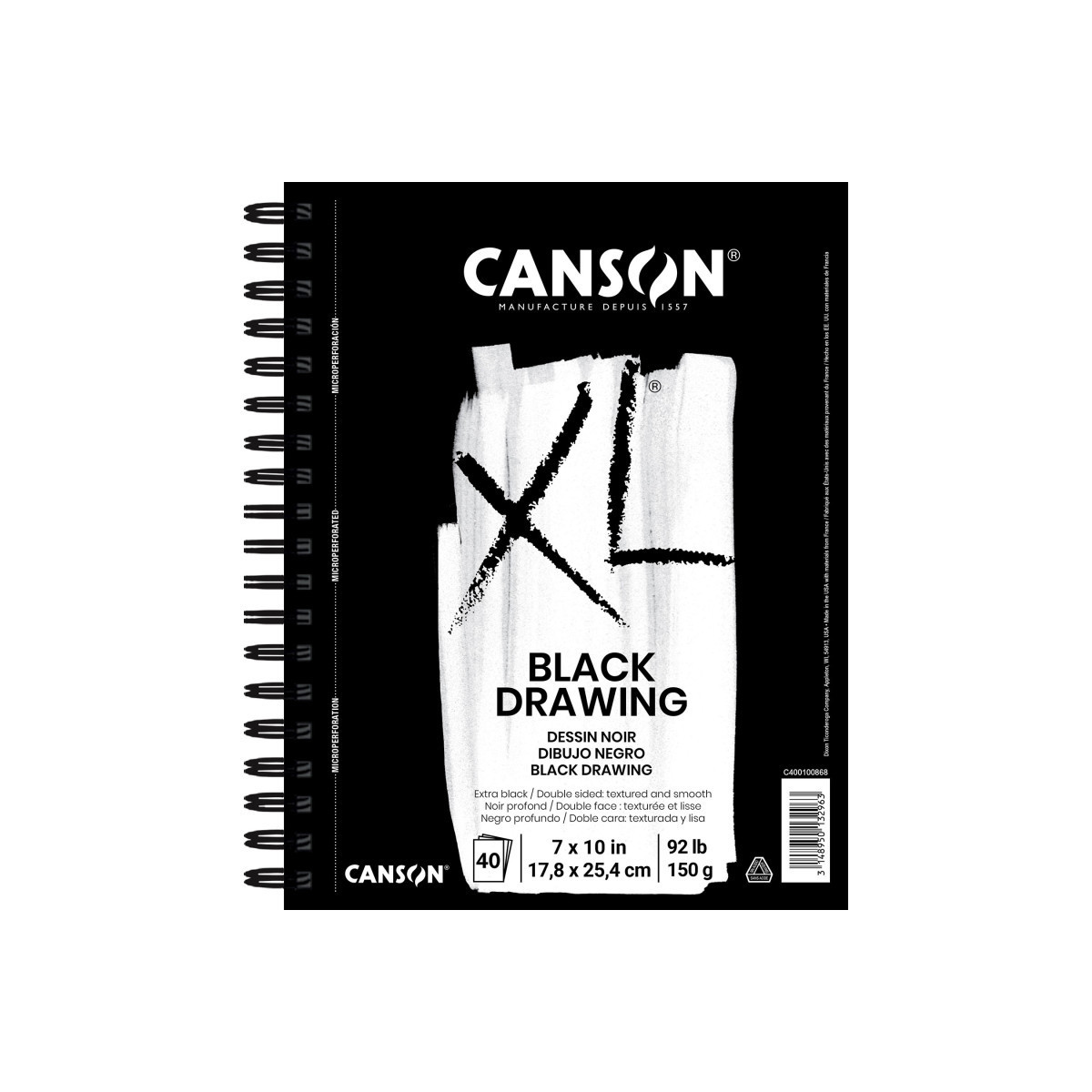 Transform your artwork with eye-catching black backgrounds that make your colors pop, thanks to fade-resistant dyes that create a stunning contrast. These two-sided, midweight sheets are built to handle everything from colored pencils & pastels to pens & markers, offering both textured & smooth surfaces for versatile techniques. Perfect for honing your craft or showcasing finished pieces, this archival, acid-free paper comes in a durable, portable sketchbook, ready to go wherever inspiration leads you. With a rich heritage spanning over four centuries, the Canson brand has firmly established itself as a trusted & renowned name in the art world. Since its inception in 1557, Canson has been synonymous with quality & innovation, serving as a go-to choice for artists of all levels. The Canson XL range was specifically developed to meet the needs of art students—high sheet counts, various textures & weights, & sturdy binding at an affordable price. Students can explore their personal tastes & techniques across drawing, paint, & mixed media art forms. Once artists are confident enough in their skillset, we recommend transitioning over to the Canson Artist Series family of paper for a museum-quality look & feel.