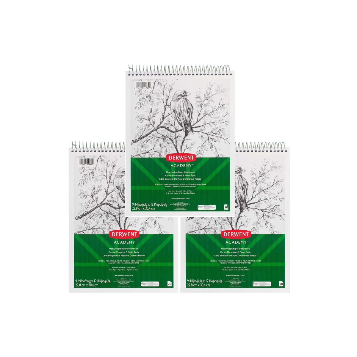 Bring your ideas to life with this Derwent Academy Heavyweight Paper Sketchbook. Its topbound, heavyweight pages are perfect for sketching with dry mediums and perforated so you can cleanly tear out your best work. This sketchbook features heavyweight 67lb acid-free paper. The pages easily flip back and lay flat while you work. Spiral Lock technology ensures the binding won't snag or uncoil over time. Each book includes 70 white sheets. Sold as a pack of 3 sketchbooks.