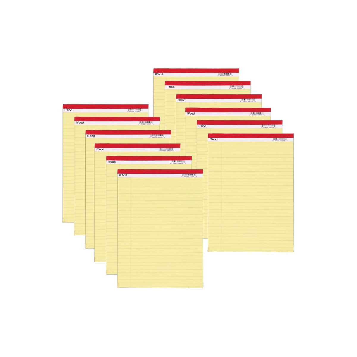 Standard Legal Pad measures 8 1/2" x 11" with perforated paper stapled at the top. The yellow bond paper is ruled 3/8" on both sides. Sturdy back cover is like a mobile desktop, providing additional support wherever you take notes. Each pad includes 50 sheets. Pack of 12.