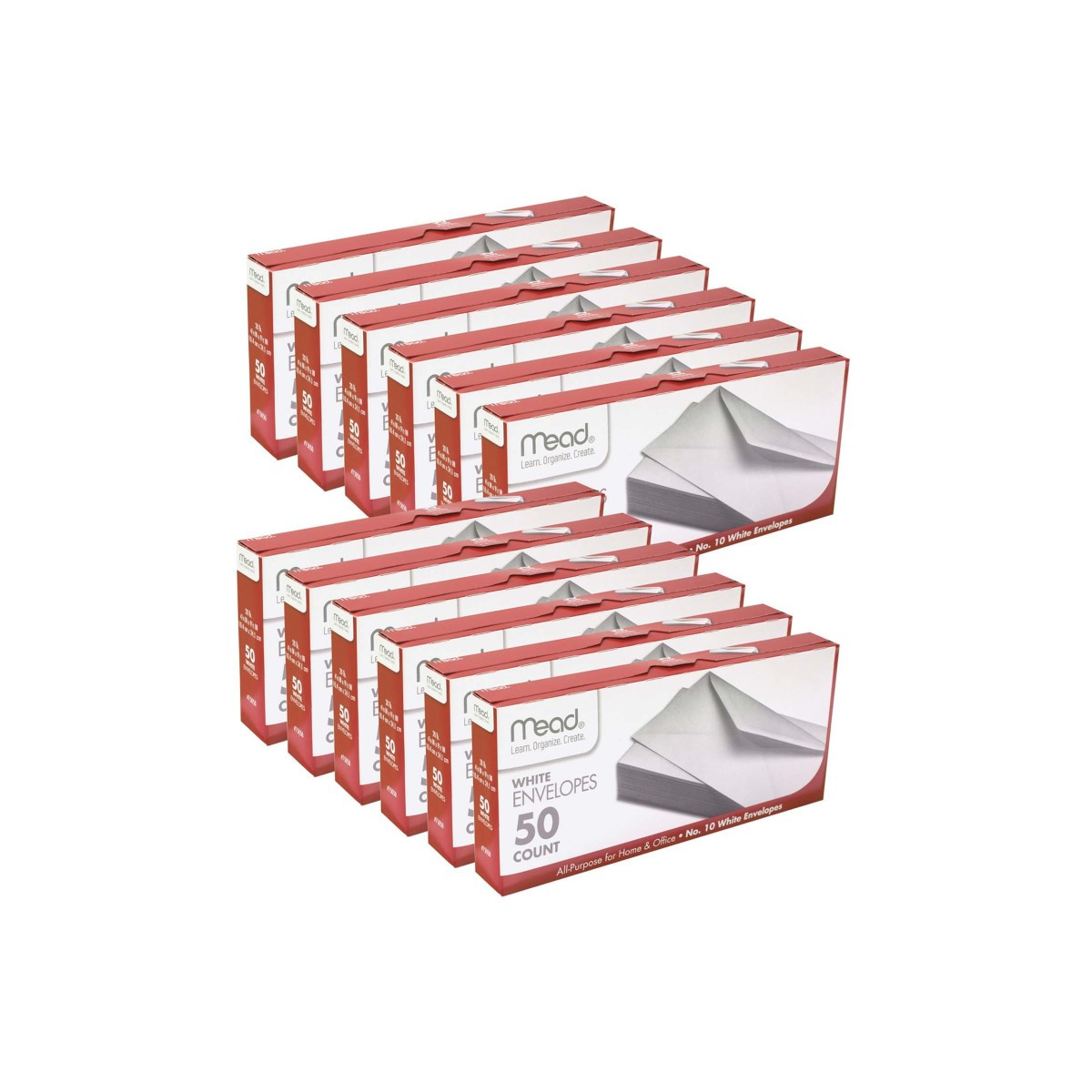 Mead plain white envelopes are ideal for use in the home or at the office. Traditional gummed-adhesive V-flap closure. Substantial business-weight paper. The No. 10 size measures 4.13" x 9.50" and is ideal for many business mailings. Tastefully attractive smooth finish. Includes 50 envelopes per box. Sold as 12 boxes, 600 envelopes.