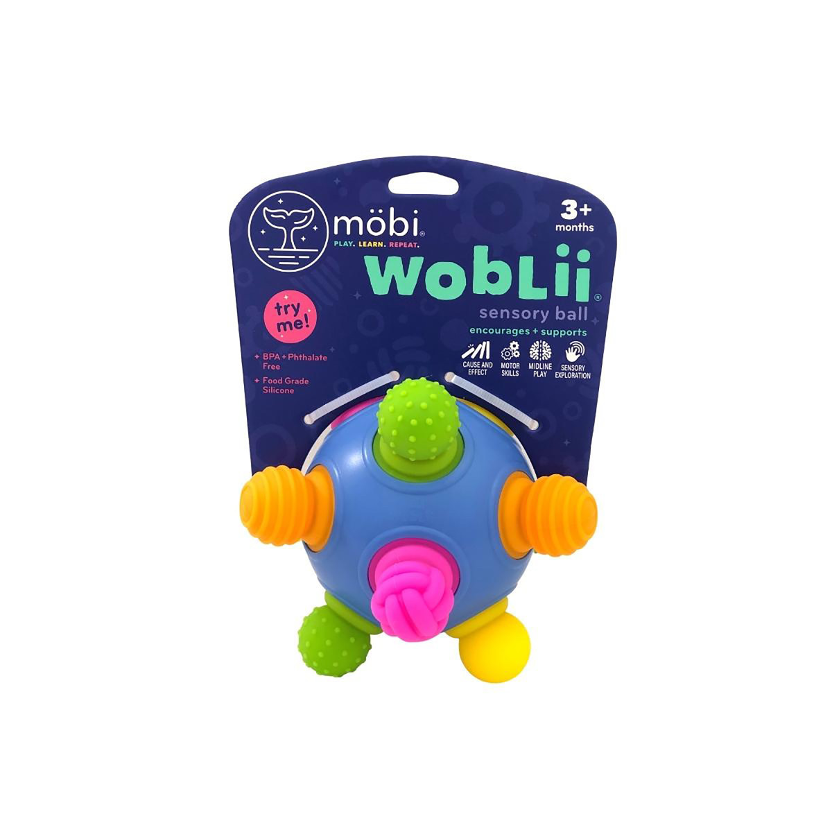 Push, pull, chew, wobble, roll, and chase—WOBLII® is a simple yet endlessly entertaining sensory ball designed to grow with your child! With bright colors, engaging textures, and a unique wobbling motion, this multi-dimensional toy keeps little hands busy for hours. Whether they're exploring its soft, flexible design or watching it wiggle and roll, WOBLII® provides endless opportunities for interactive play and sensory development. Made from BPA- and phthalate-free materials, it's a safe and durable choice for curious little ones. Get ready for nonstop fun with WOBLII®!