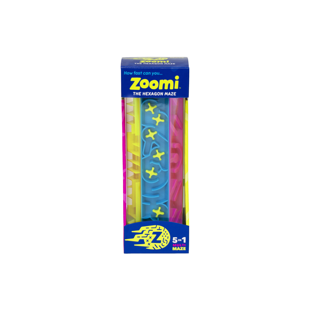 Are you ready to Zoomi?! Easy to pick up....hard to put down! Twist, turn and tumble through the 6 panels of a-maze-ment! 1) Place the ball at the "START." 2) Twist, turn, and tumble through the 5 mazes. 2) Finish the maze at the "STOP". Victory! Challenge yourself to make it through Zoomi without getting stuck. Try moving the ball through Zoomi in the opposite direction. Time yourself and challenge your friends and family to beat your best time! For ages 4+.