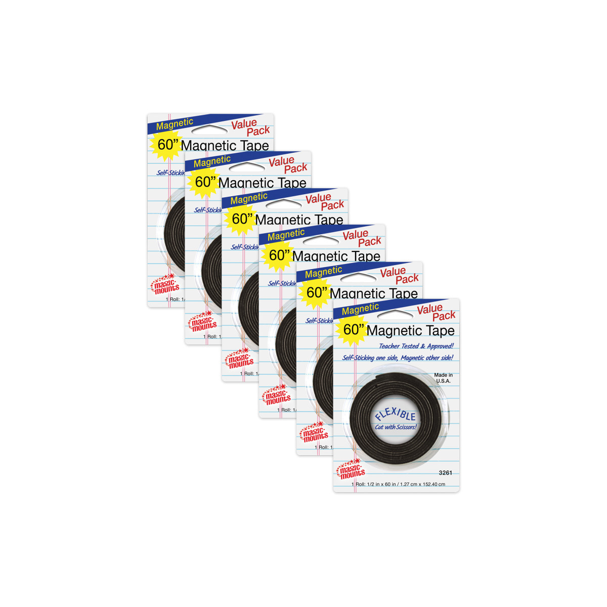 Magic-Mounts® Magnetic Tape, 1/2" x 60" Roll, Pack of 6