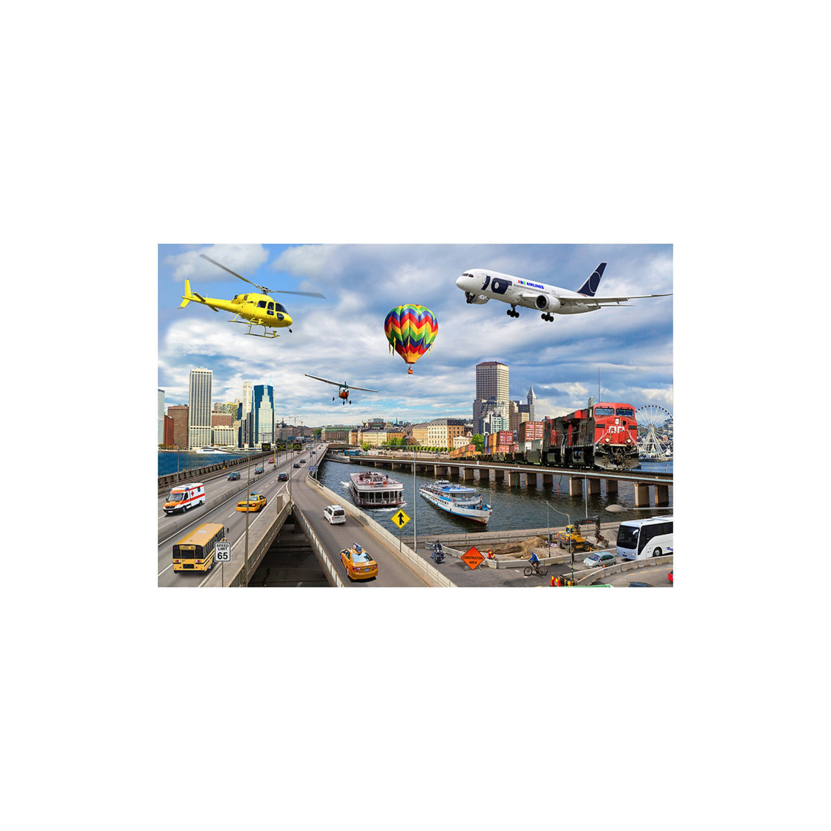 This puzzle highlights various means of transportation around the world