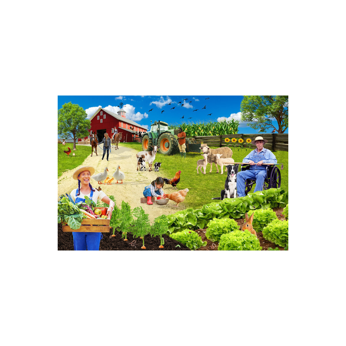 Take your child on an exciting journey through the farm with the Farmyard Adventure floor puzzle! This colorful 2' x 3' puzzle is perfect for ages 3 and up, featuring 36 large, sturdy pieces that are easy for little hands to assemble. Kids will love exploring the lively farmyard scene, packed with friendly animals, tractors, and vibrant countryside details. Not only is this puzzle fun, but it also encourages problem-solving, hand-eye coordination, and imaginative play. It's the perfect way to introduce preschoolers to farm life while developing essential skills. Ages 3+, 36 pieces, 2x3 finished size.