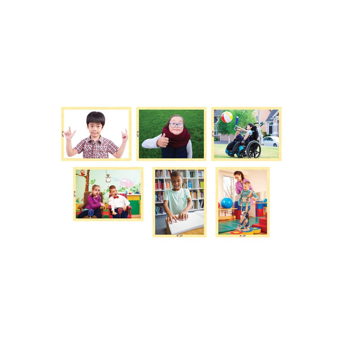 All children live with challenges, regardless of their abilities or physical limitations. This puzzle set celebrates our uniqueness and how some children overcome challenges in daily life. This set of six wooden puzzles of real children walking, playing, and socializing are helpful for any classroom promoting inclusion and acceptance. Ages 3-5, 6 puzzles of 7-12 pieces each. 9" x 12" finished size of each puzzle.
