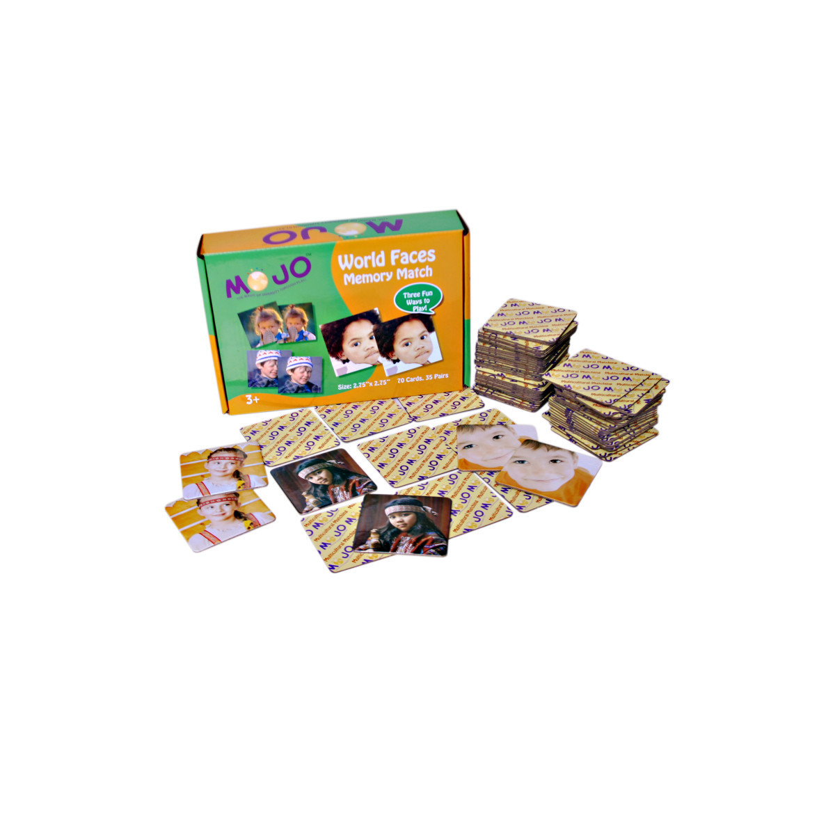 World Faces Memory Cards offer children the opportunity to identify similarities and differences of children around the world. The 35 pairs contain matching high-definition images of children that can prompt discussions about clothing, hair, and facial expressions. Glossy, sturdy-weight cards are easy to grip and flip. Ages 3-6+, 70 cards (35 pairs). Cards measure 2.75" x 2.75".