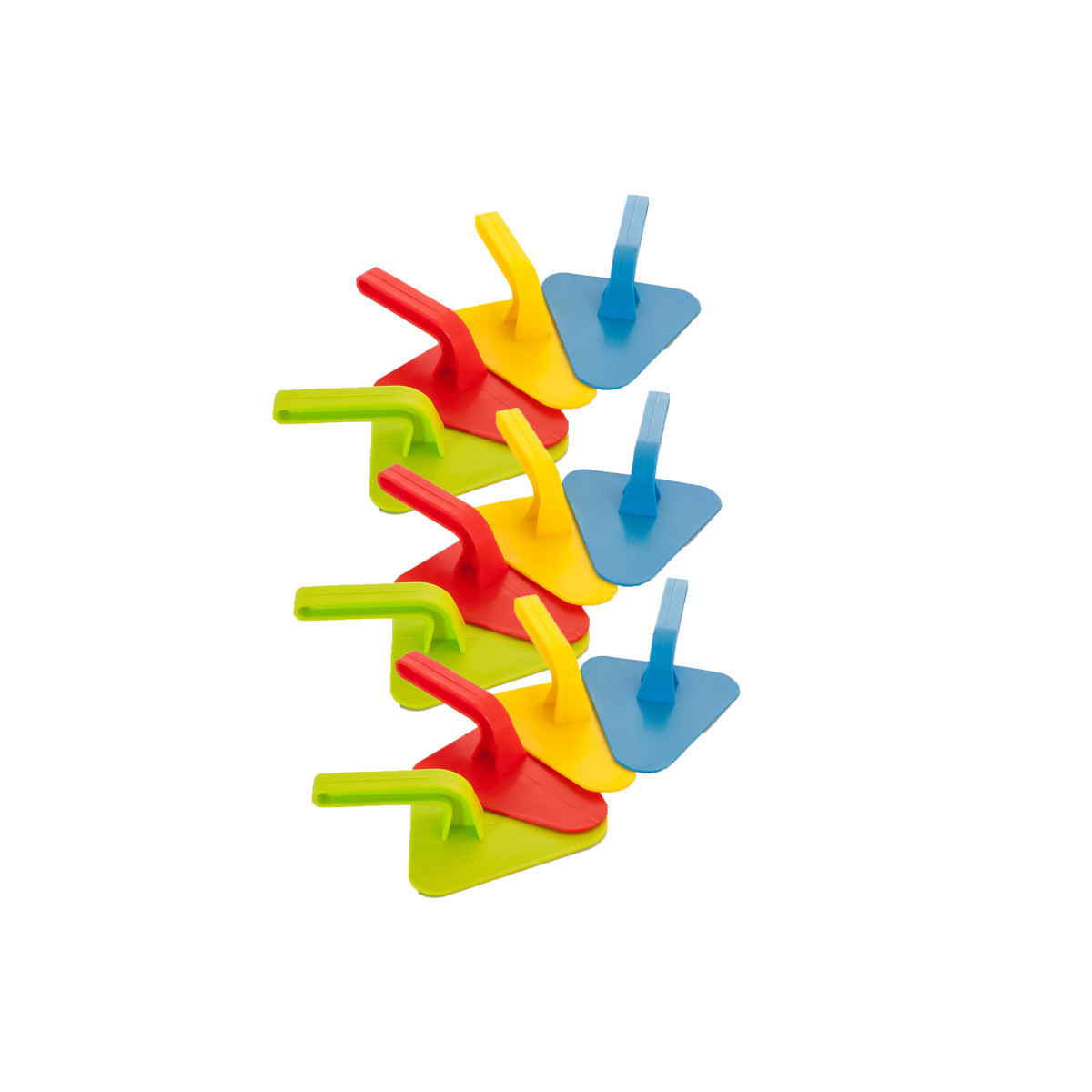 This is a set of 4 trowels that are made of strong and resilient plastic and can be used in sand and snow. They come in four bright colors which include red, green, yellow and blue. Sold as 3 trowel sets.