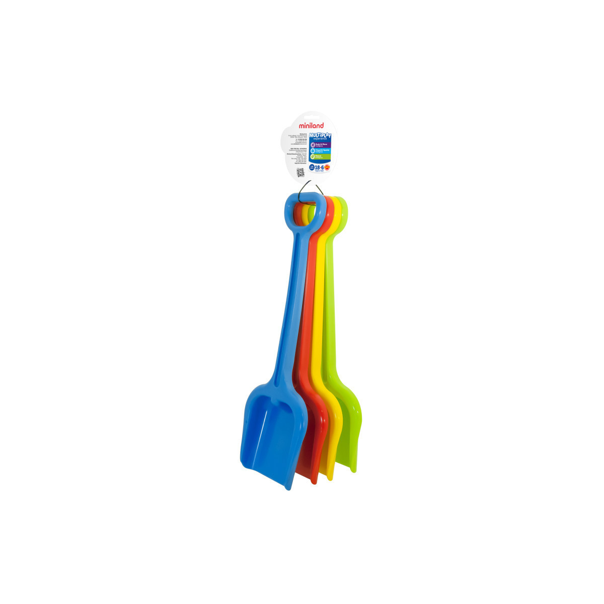 Large size (20"), highly resistant and maximum durability. Extra long handle and reinforced frame. High performance for collective use. Resistant to cold and hot temperatures. Suitable for playing in sand and snow. Pack of 4 shovels.