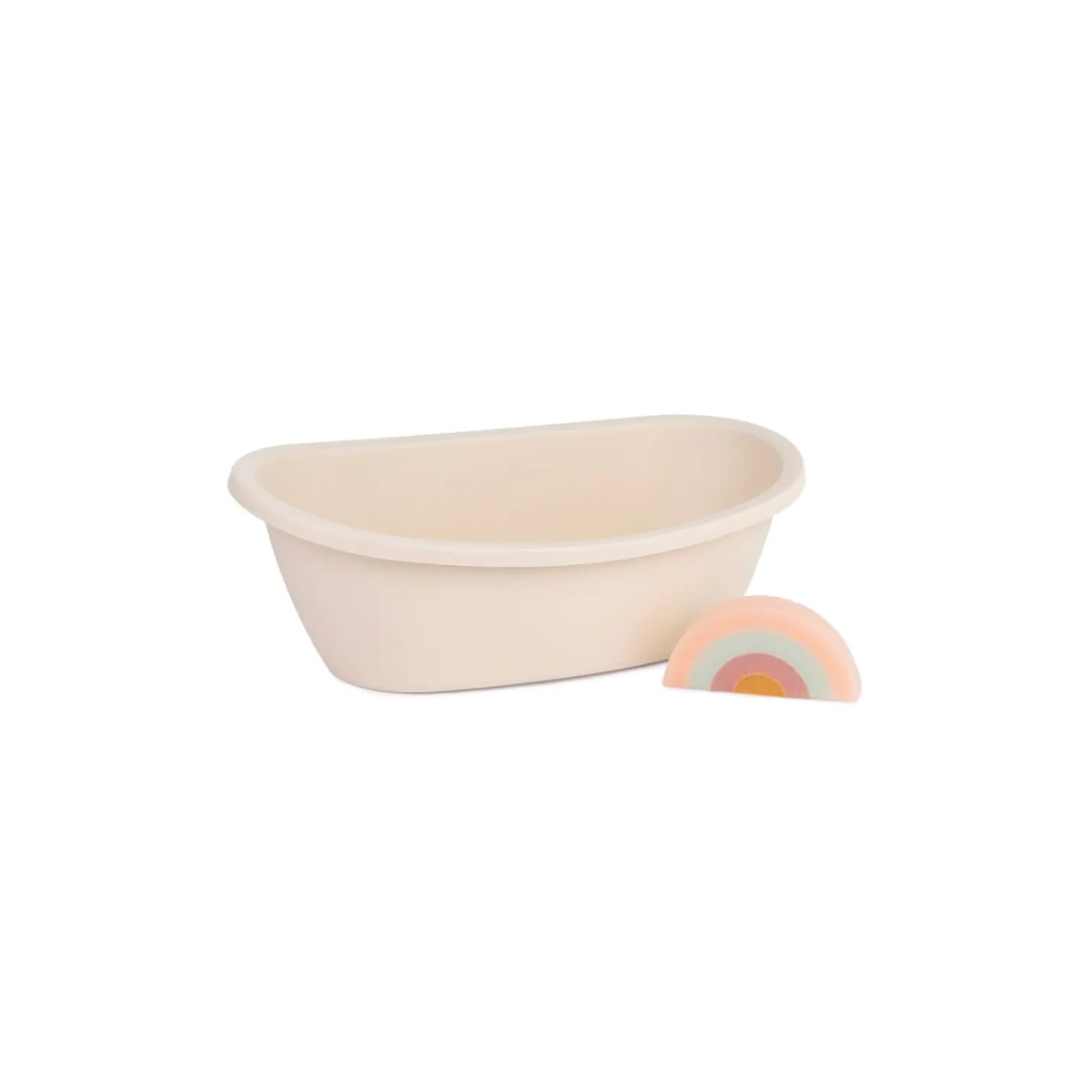 Baby bath tub made of bioplastic from sugarcane for bathing Miniland dolls of up to 16-3/8". A rainbow-shaped sponge comes with it.