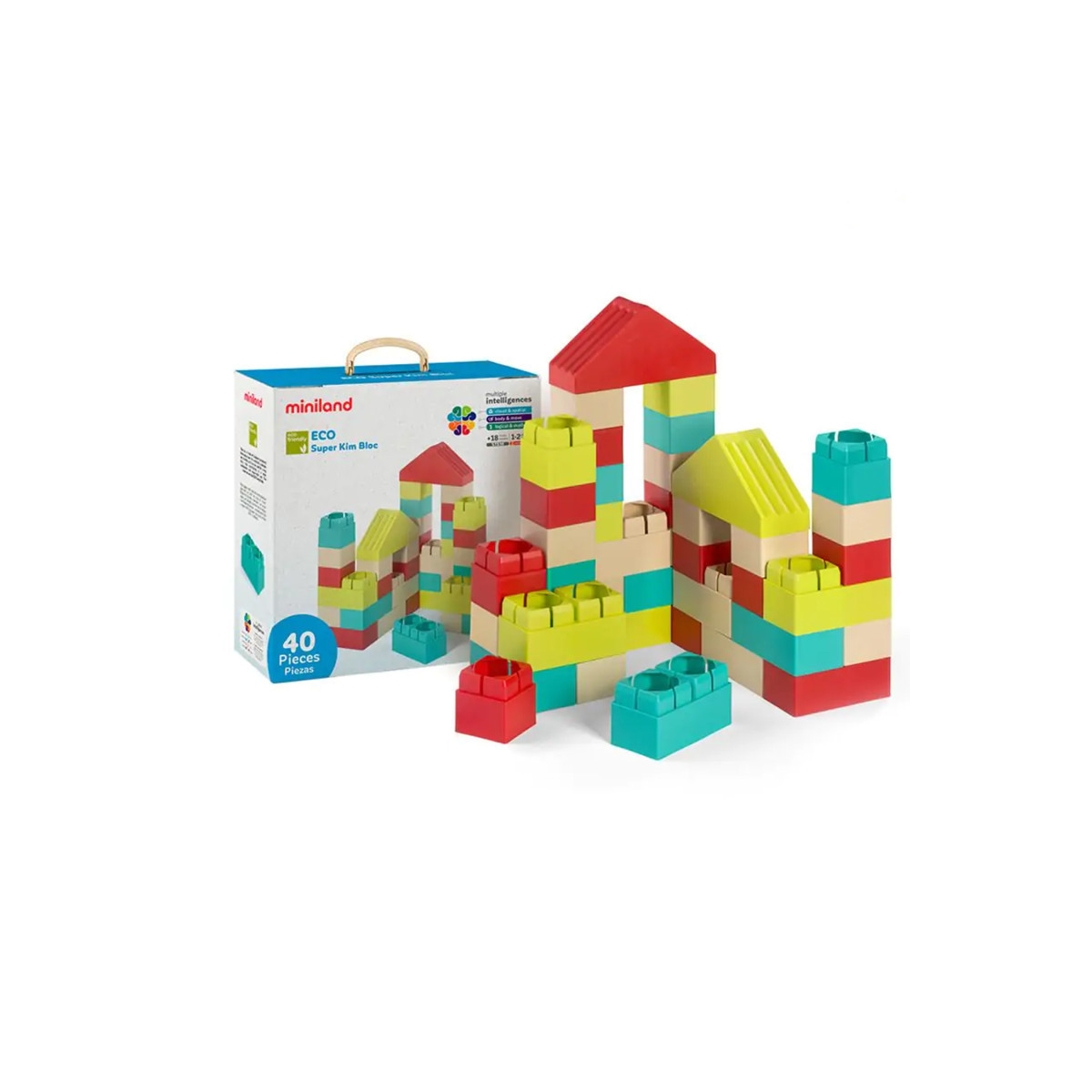 This fun building game improves children's hand-eye coordination as they learn about colors and spatial concepts. Set of 40 big building blocks, made in bioplastic derived from sugar cane, a flexible and durable eco-friendly material, which makes these blocks super easy for children to fit together and use. These activities help children to learn about numbers and develop sorting skills. The blocks are made of soft plastic which makes it easier for kids to handle.